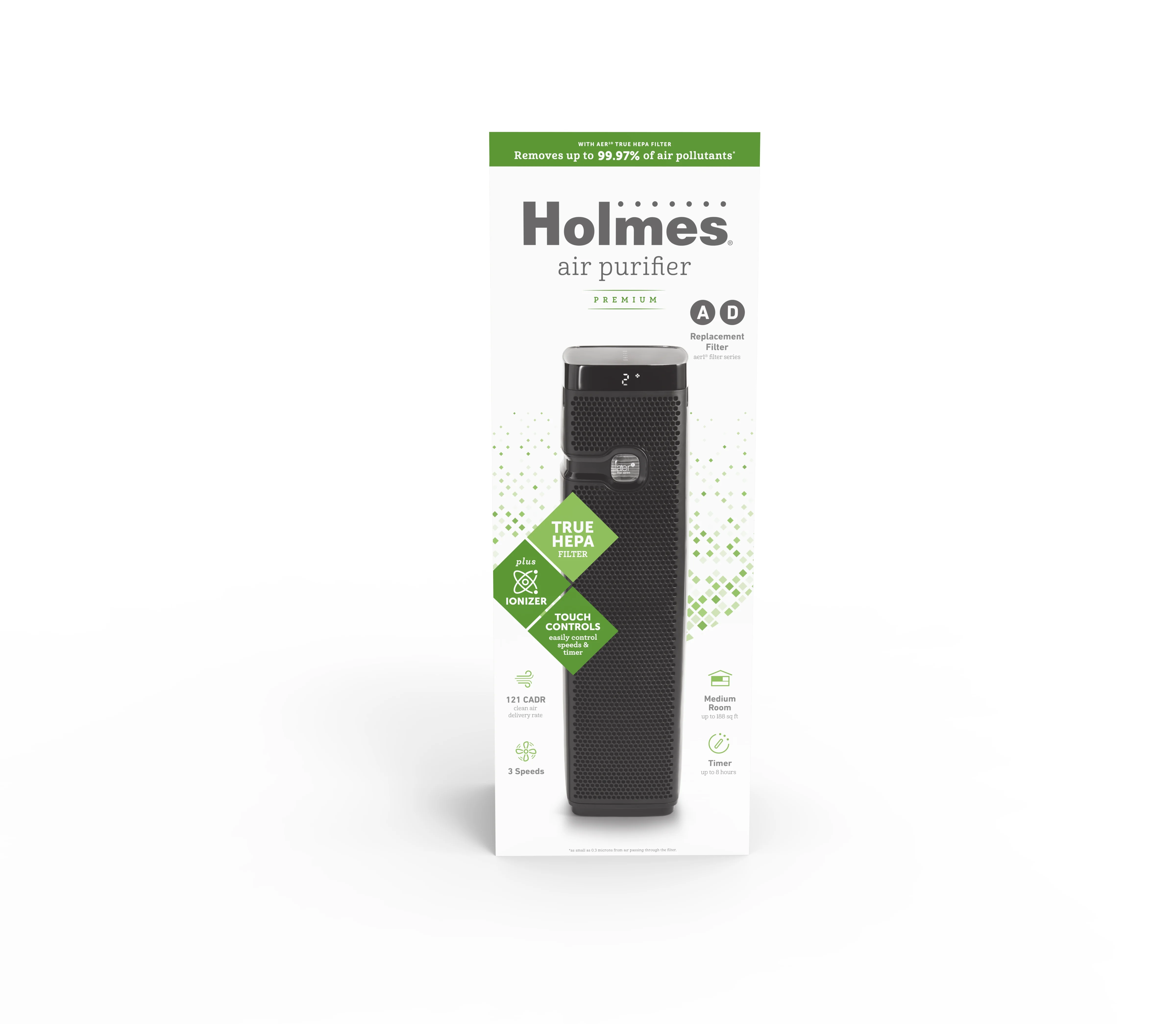 Holmes Aer1 True Hepa Air Purifier Tower, with Timer and Filter Light, (HAP9435B), Medium Room