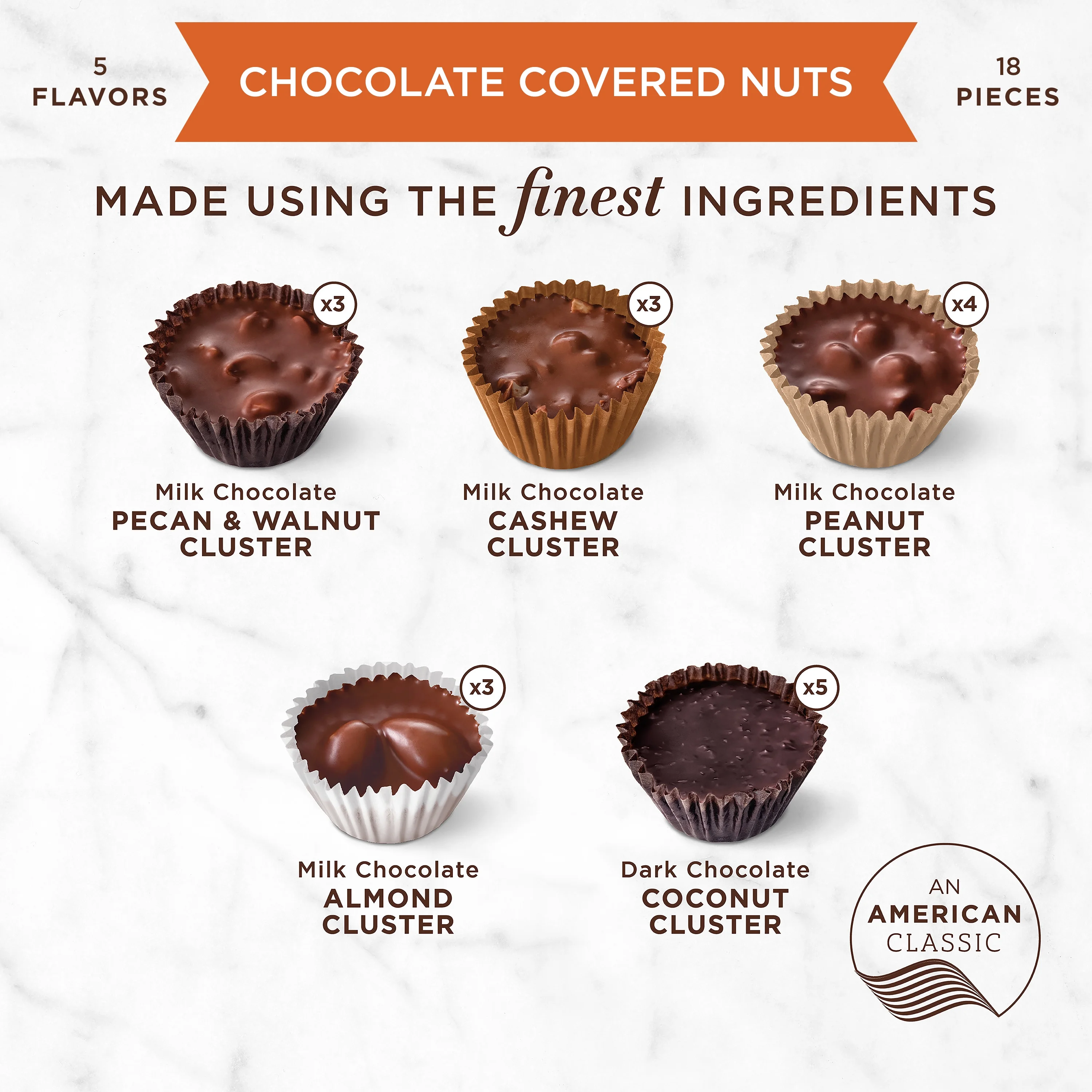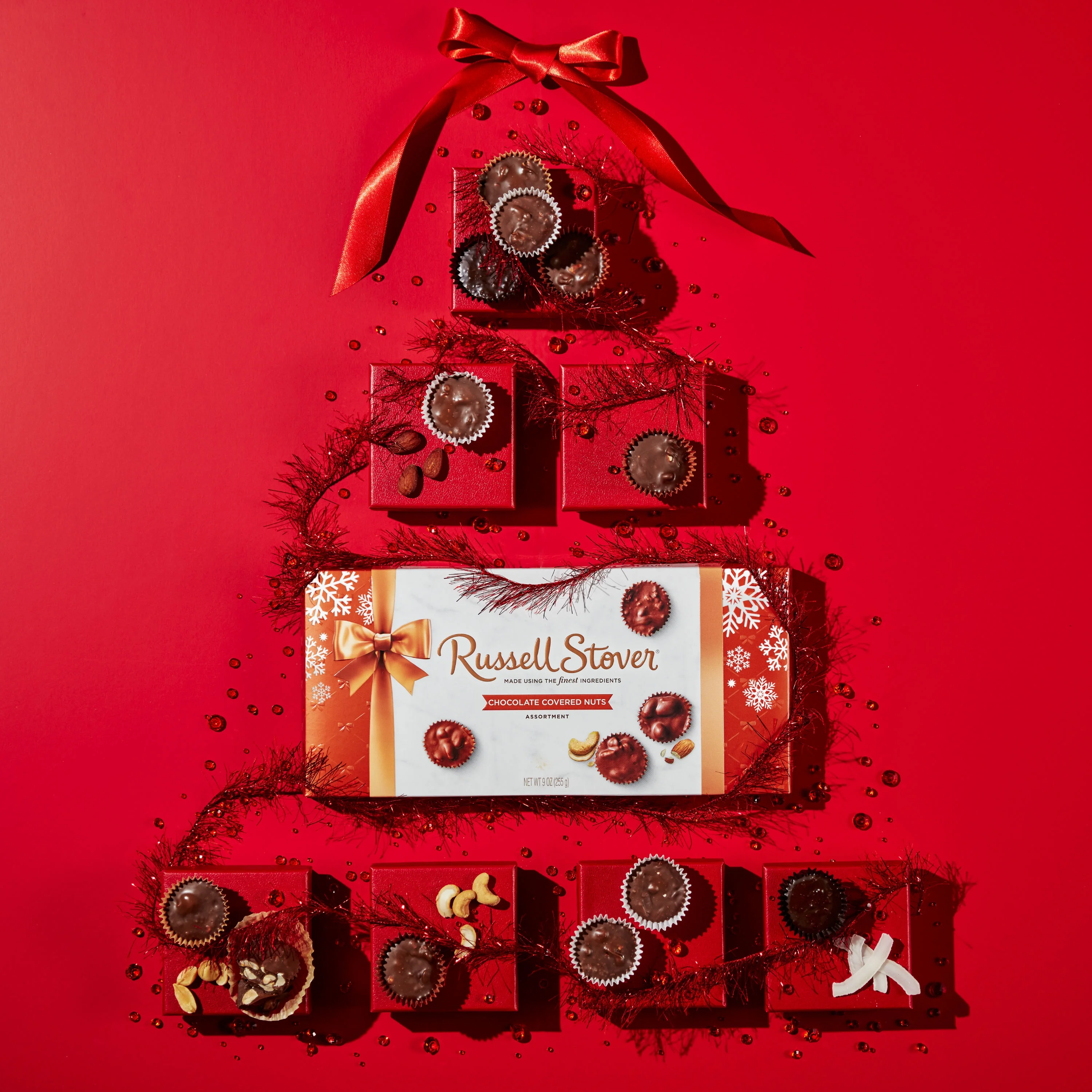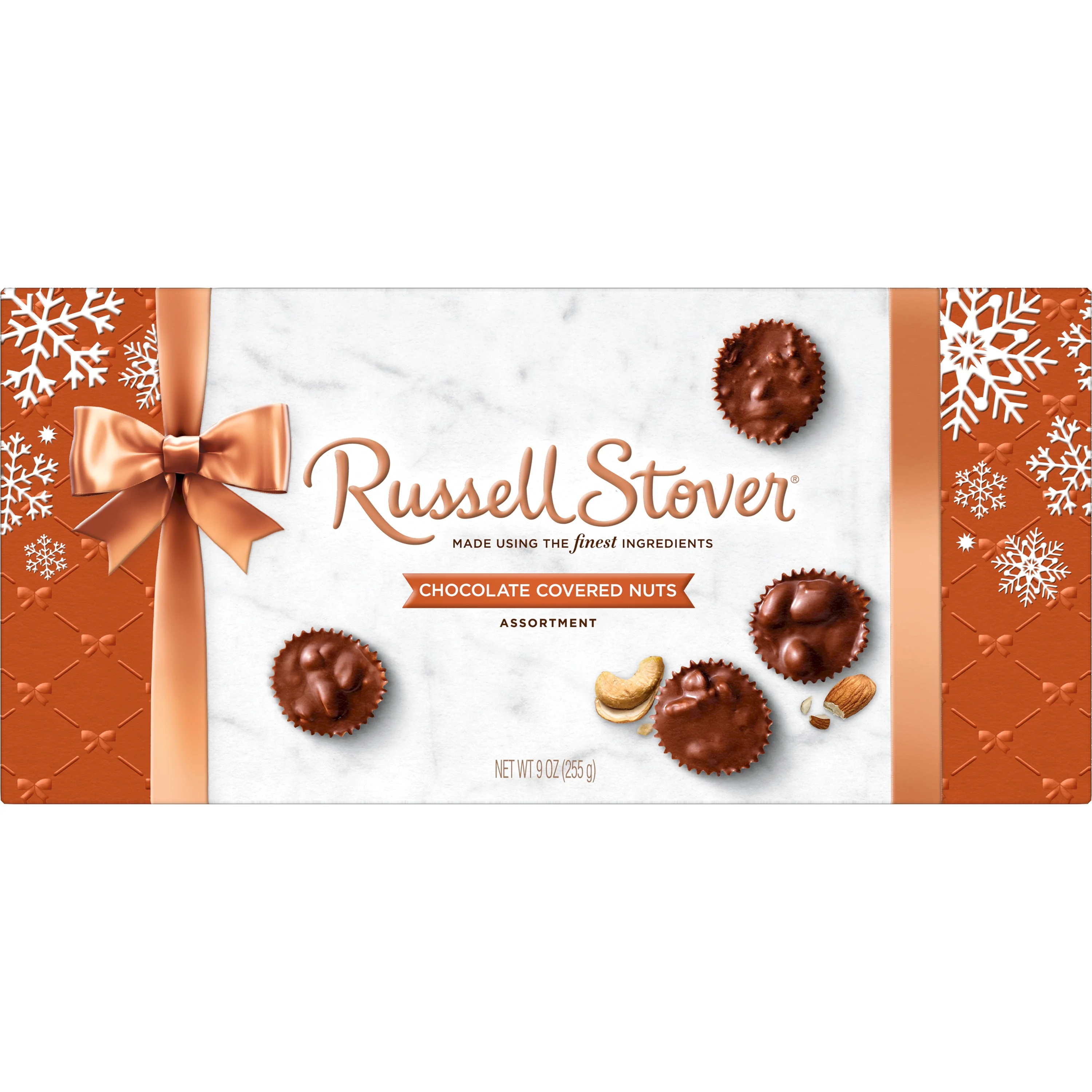 RUSSELL STOVER Christmas Chocolate Covered Nuts Assortment in Milk & Dark Chocolate Gift Box, 9 oz. (18 pieces)