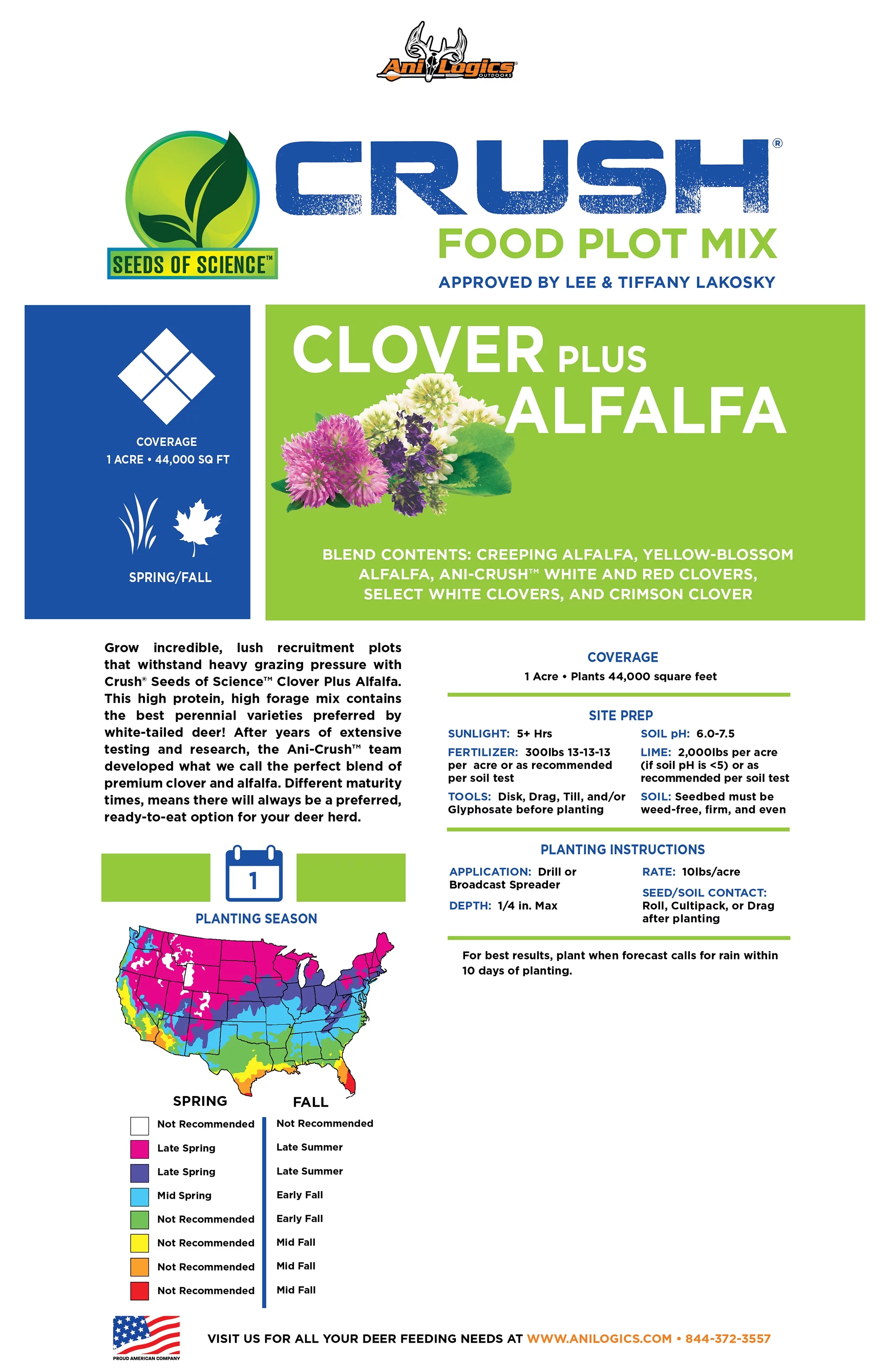 Ani-Logics Outdoors Crush Seeds of Science Clover plus Alfalfa Deer Food Plot, 10 lb Bag