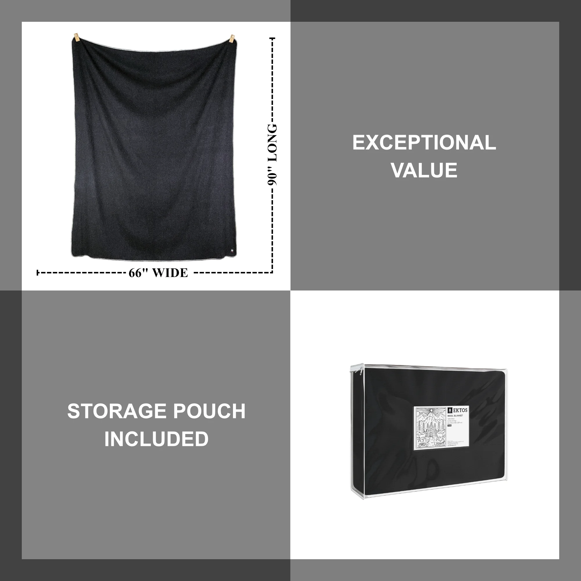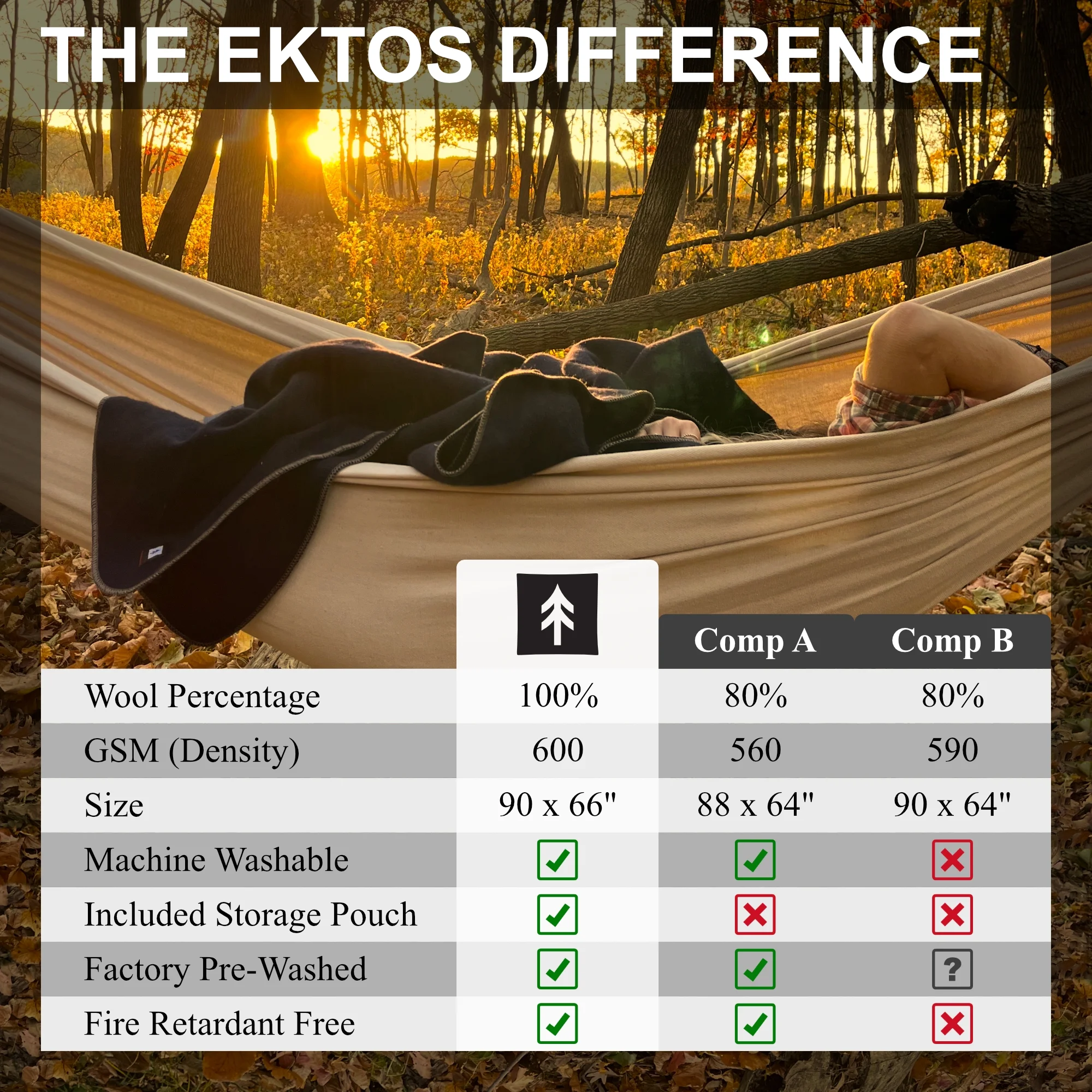EKTOS 100% Wool Blanket, 66" x 90", Camping Blanket, Wool Blanket Military Surplus (Charcoal, Twin Size)