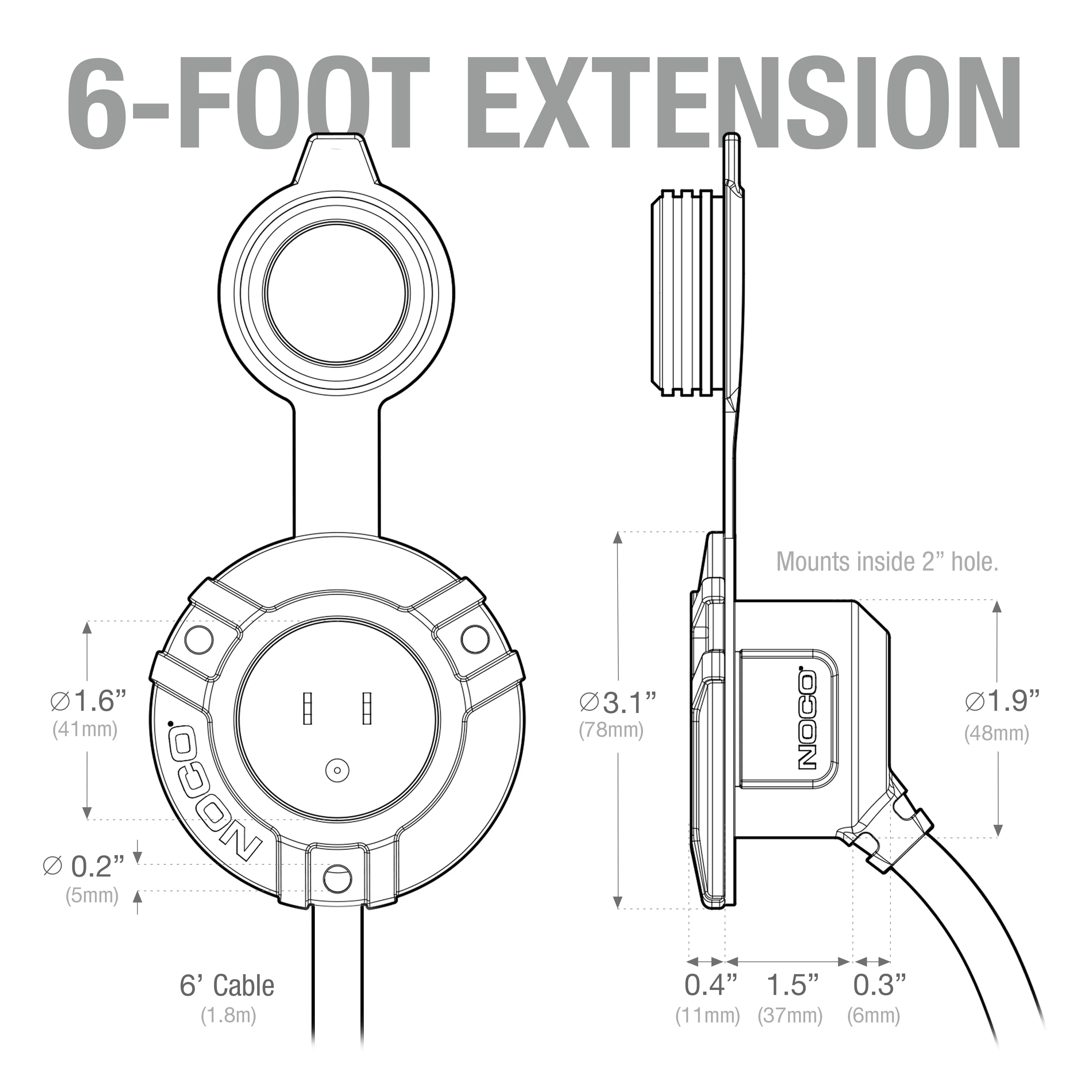 NOCO GCP1E 15 Amp 125V AC Port Plug Power Inlet with 6-Foot Integrated Extension Cord
