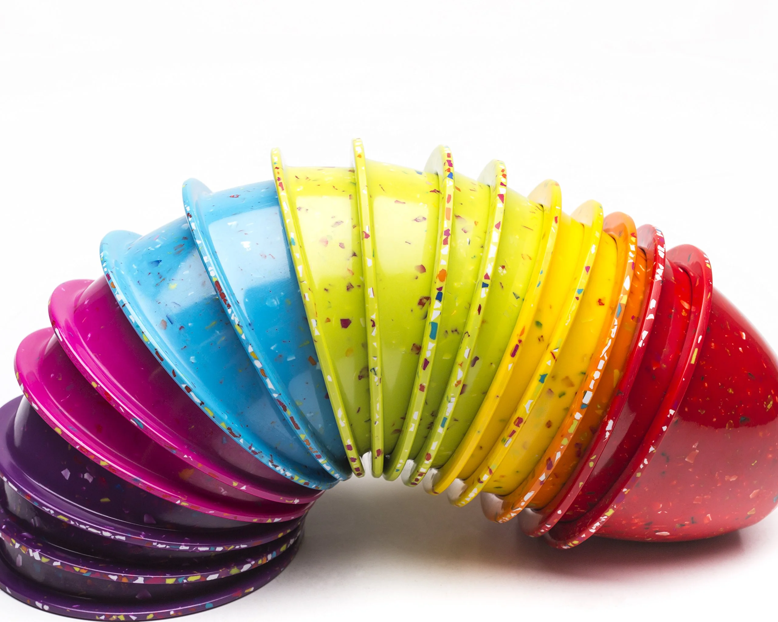 Zak Designs for Prepping and Serving Food, Made with Durable Melamine Set, Nesting Space Saving Storage, 4 Piece Confetti Mixing Bowls, Orange,Kiwi, Turquoise, Magenta