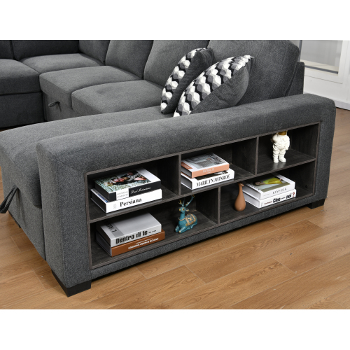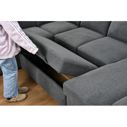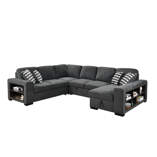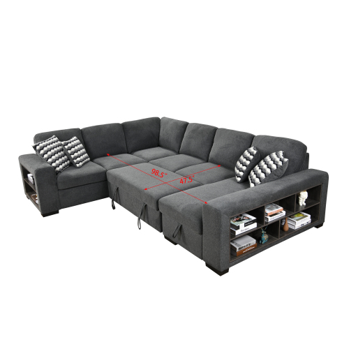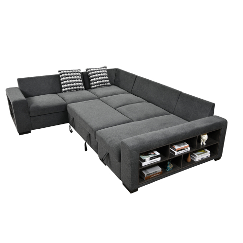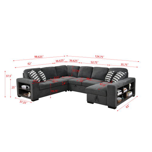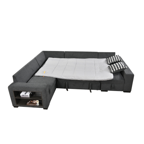 Dolonm 125'' Sleeper Sofa with Pull Out Bed and Storage Chaise Ottoman, U Shaped Sectional Couch with Adjustable Headrest and Stools for Living Room