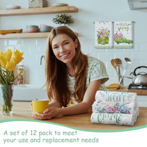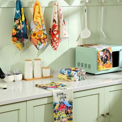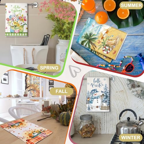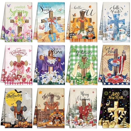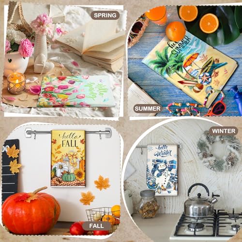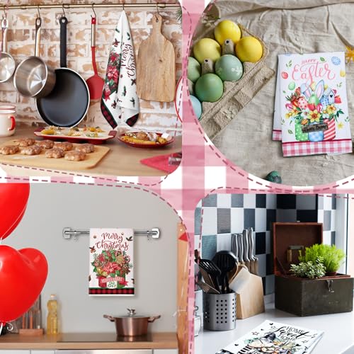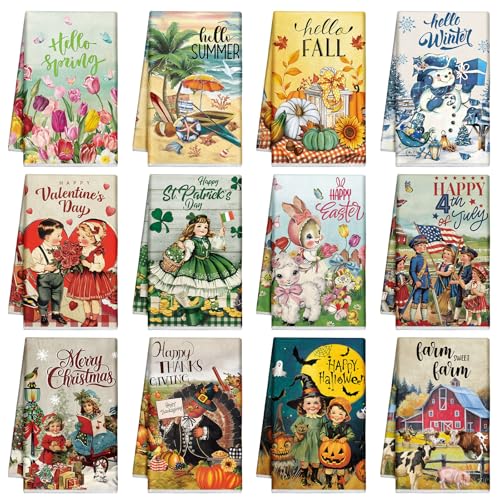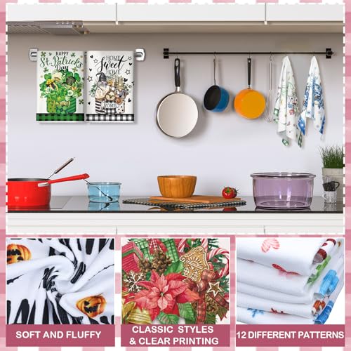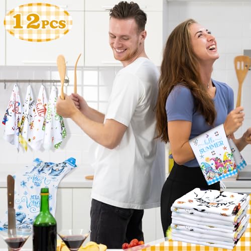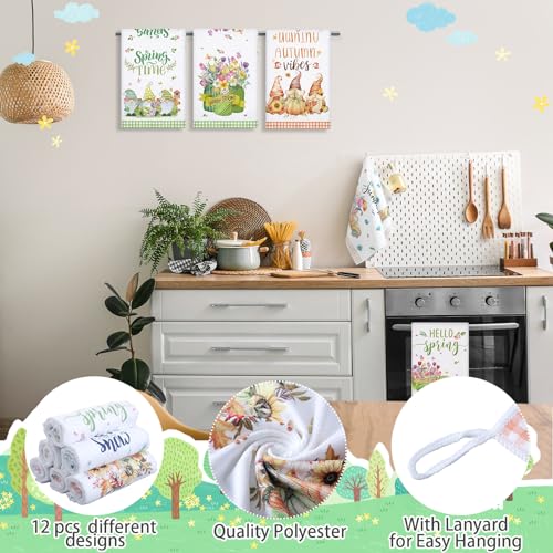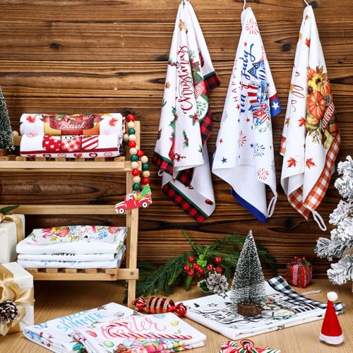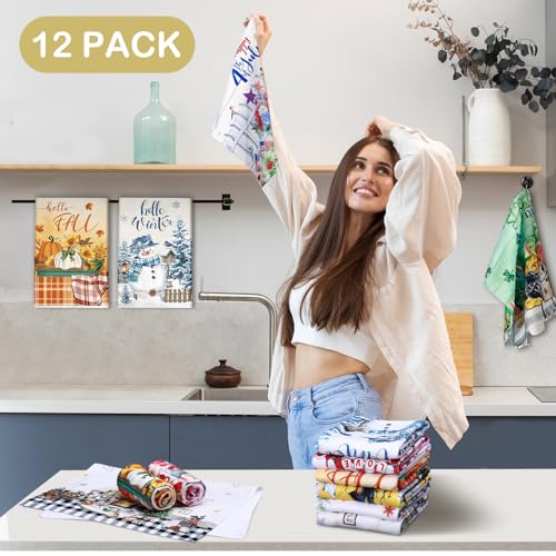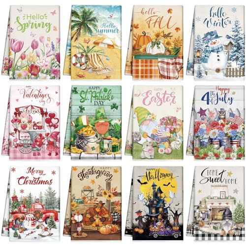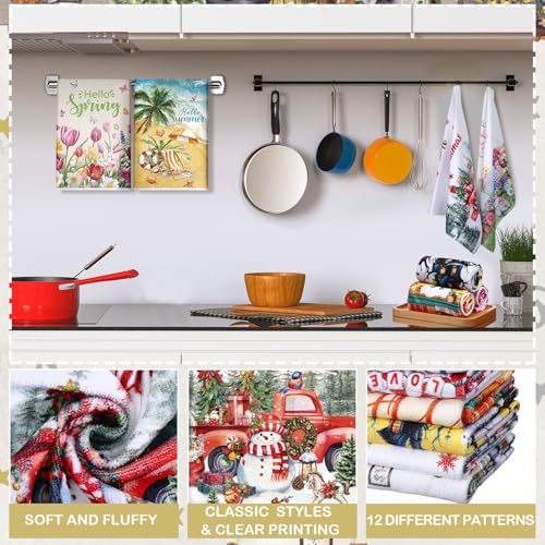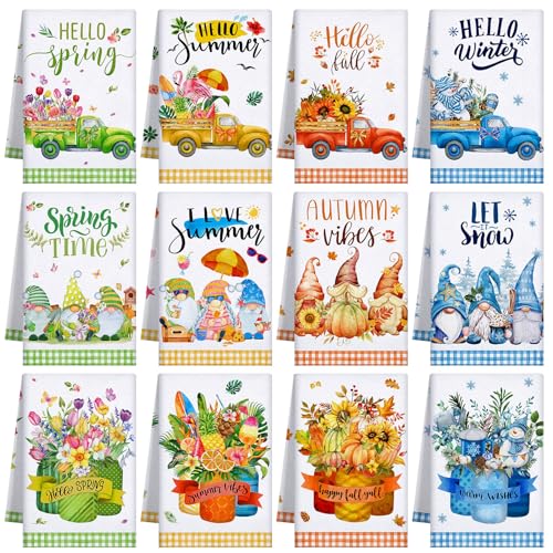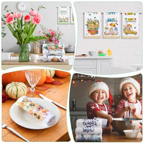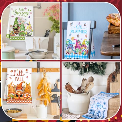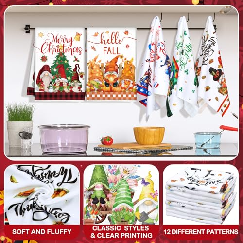 12 Pcs Seasonal Kitchen Towels Set for All Holidays Hand Dish Tea Towels Gift Bulk Christmas Absorbent Dishcloths Housewarming Gift for Cooking Kitchen Bathroom(Gnome Style,Bright Color)