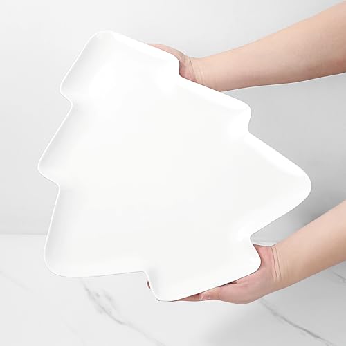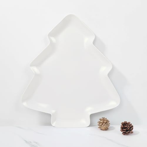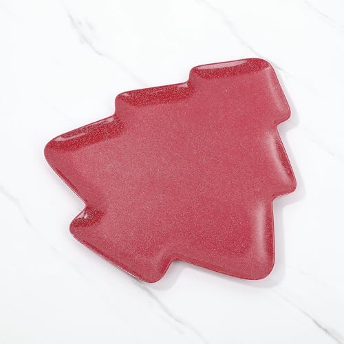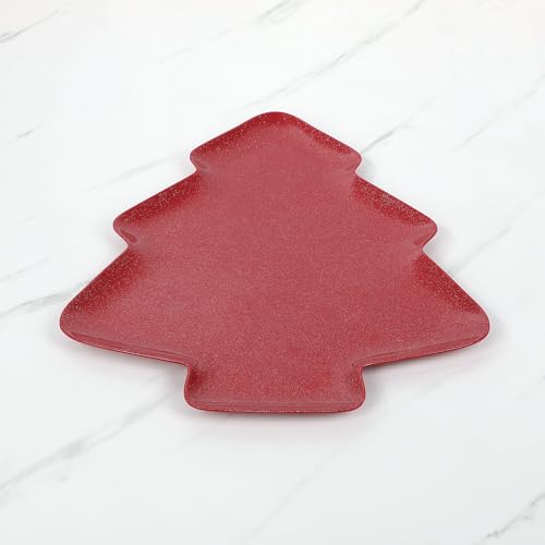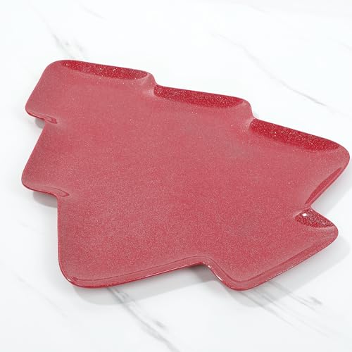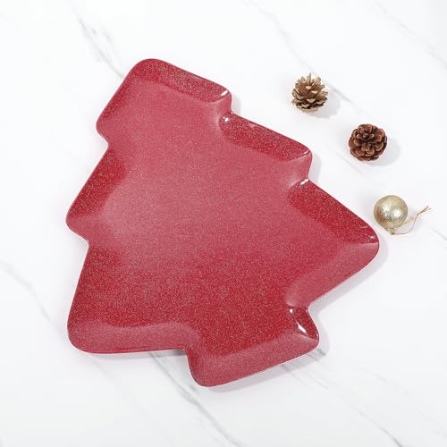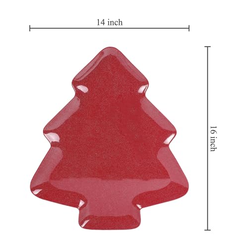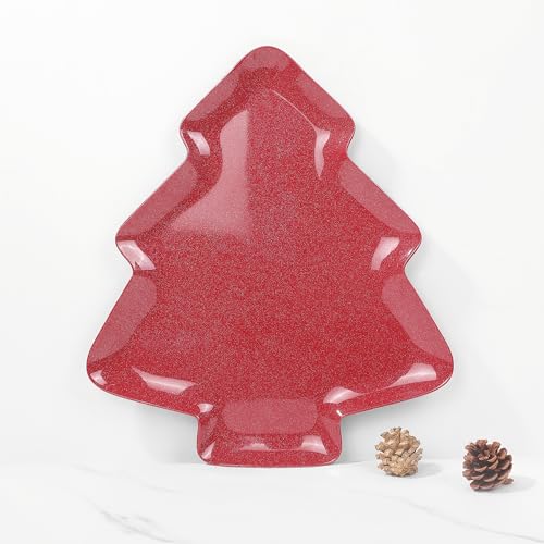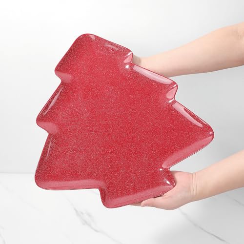 UP UPware Twinkle Christmas Tree Shaped Melamine Serving Platter, Elegant Holiday Party Tray, Festive Christmas Decor, for Snacks, Appetizers, and Desserts, Red, 16 x 14 Inch