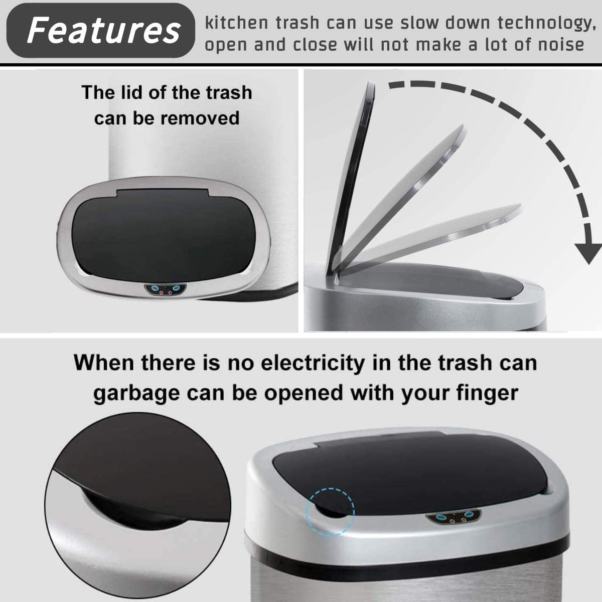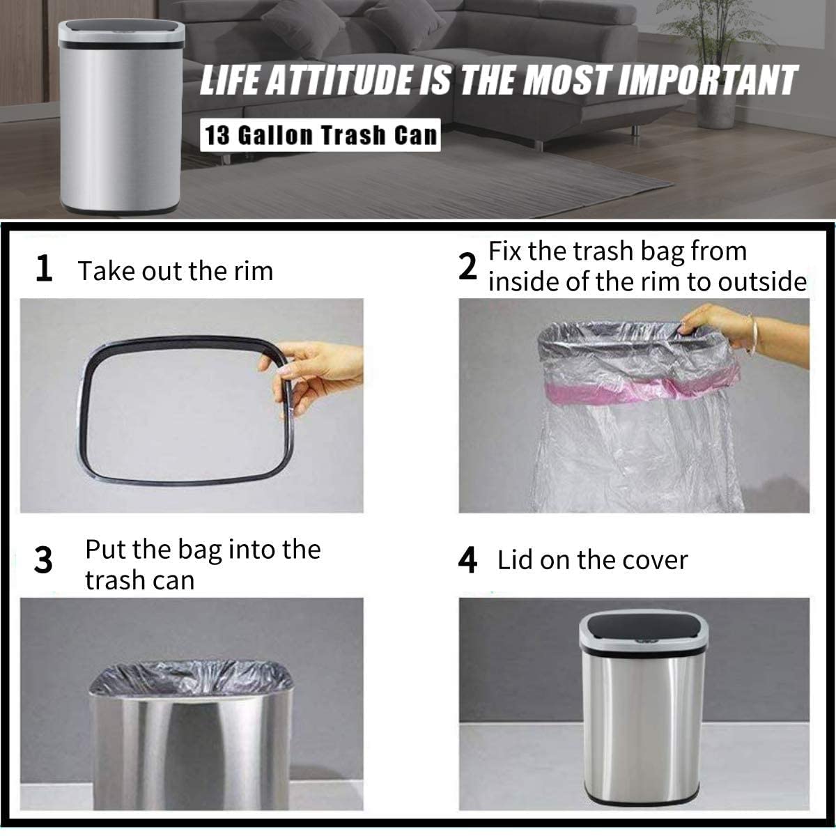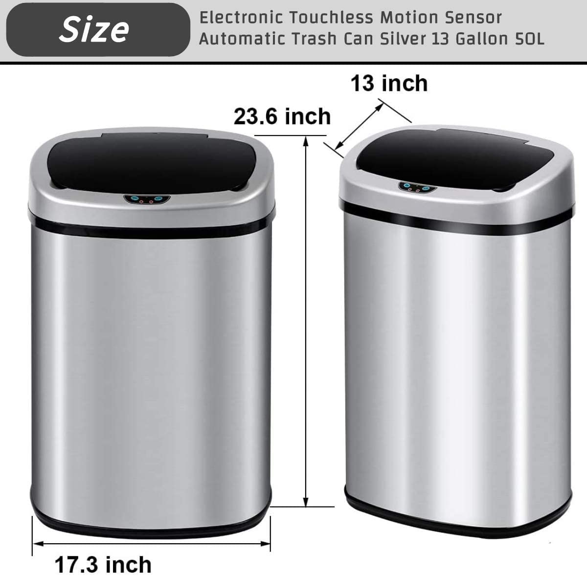 13 Gallon Stainless Steel Kitchen Trash Can with lid, Automatic Motion Sensor Garbage Trash Bin w/Toch-Free & Anti-Fingerprint Mute, for Home Office Bedroom, Powered by 4C Batteries (not Included)