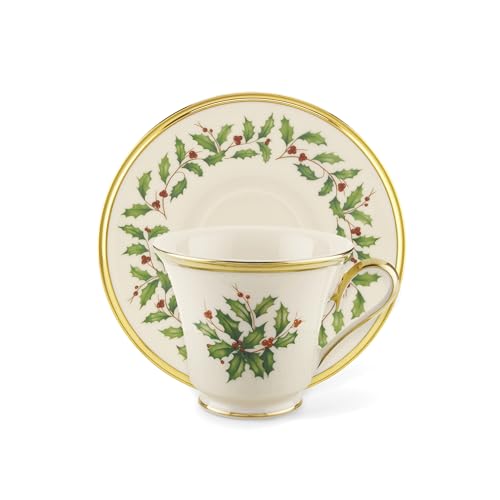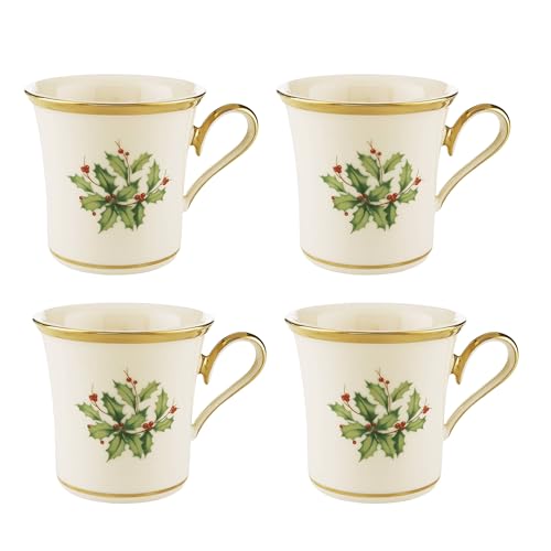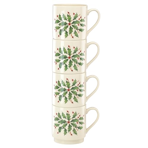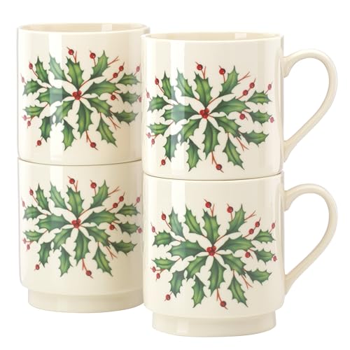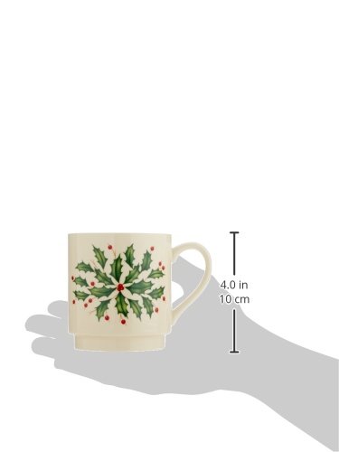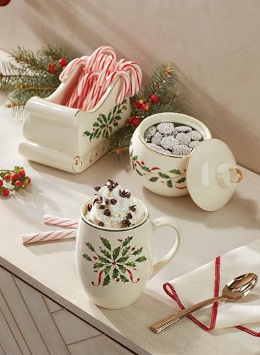 Lenox Coffee Mug, 18 Oz Holiday Cocoa Mug Set, Stoneware Material, Microwave and Dishwasher Safe, Christmas Holly Drinkware Set, Christmas Decorations, Holly Design (Red/Green, 18 Oz, 1 Piece)