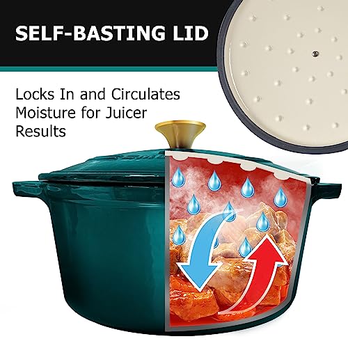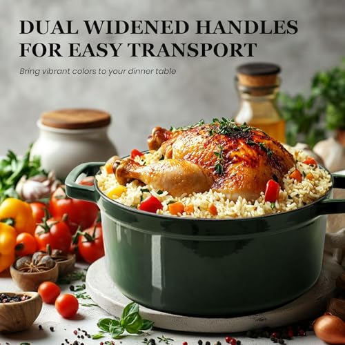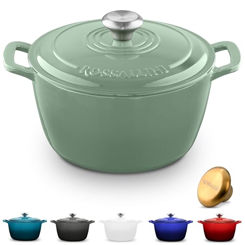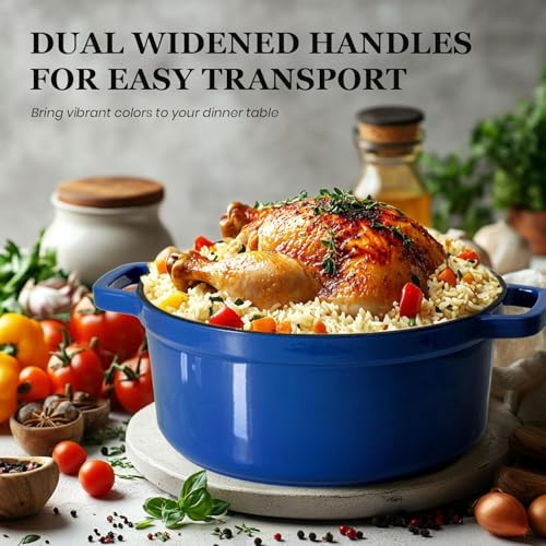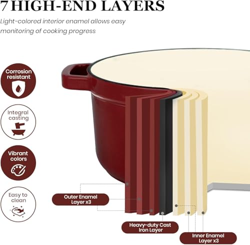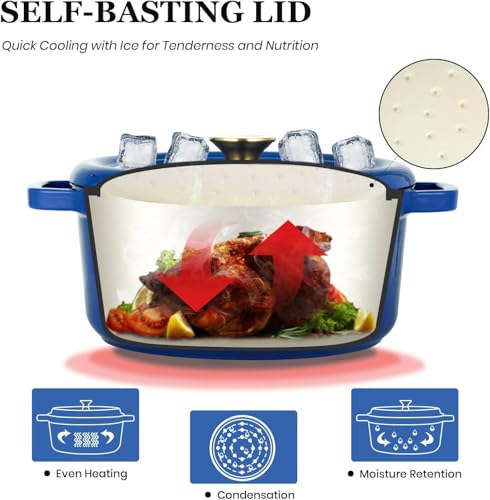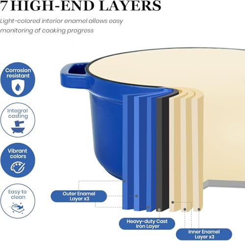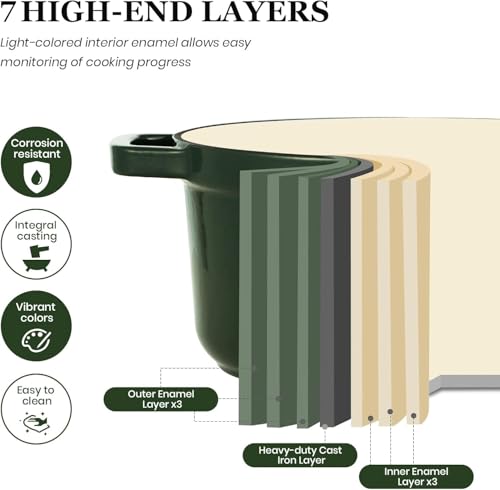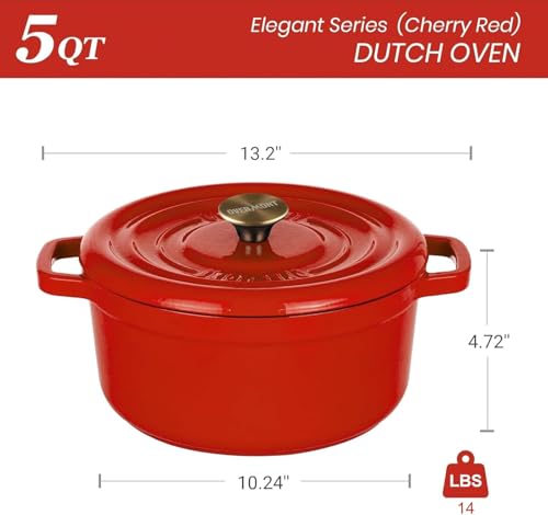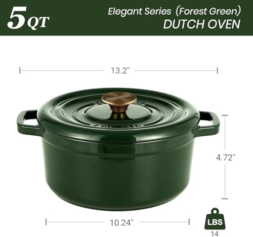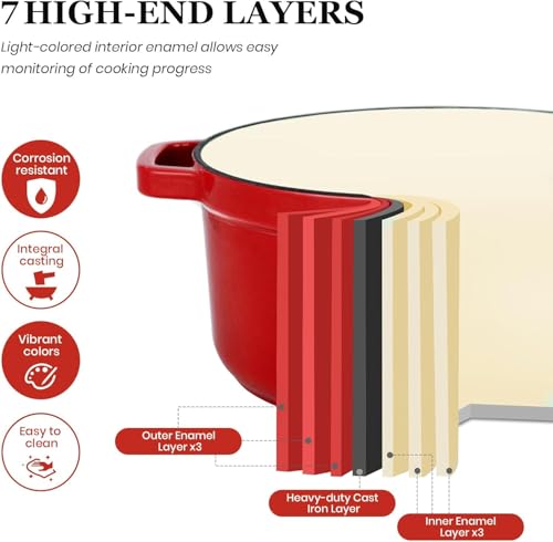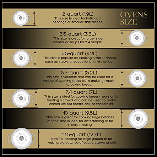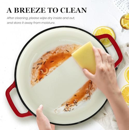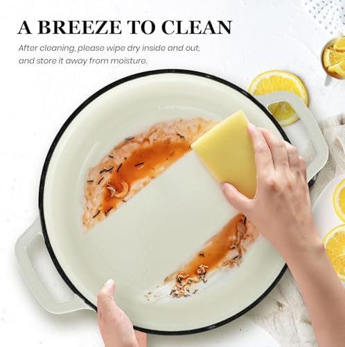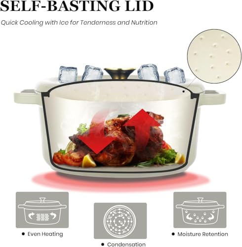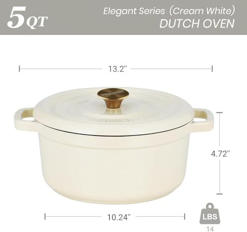 Overmont Enameled Cast Iron Dutch Oven - 5QT Pot with Lid Cookbook & Cotton Potholders - Heavy-Duty Cookware for Braising, Stews, Roasting, Bread Baking white