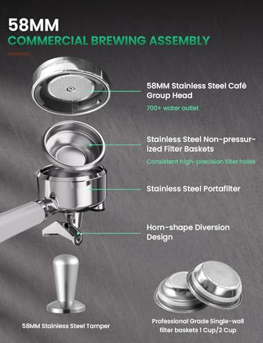 Espresso Machine with Grinder, Dual-Boiler 58MM Professional Espresso coffee Machine with Powerful Steam Wand Beginner Friendly Espresso Maker Stainless Steel Latte Cappuccino Machine for Home
