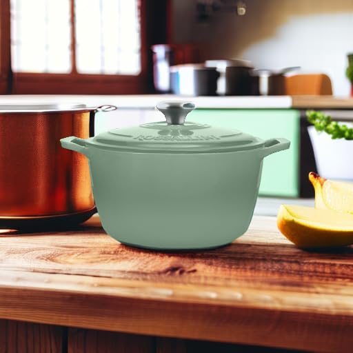 Signature Enameled Cast Iron Dutch Oven, Non-Stick Serving Pot with Tight Fitting Lid for Perfect Roasting, Baking, Sauteing, and Bread Making | 5.5Q (5.2L) - Oyster Grey