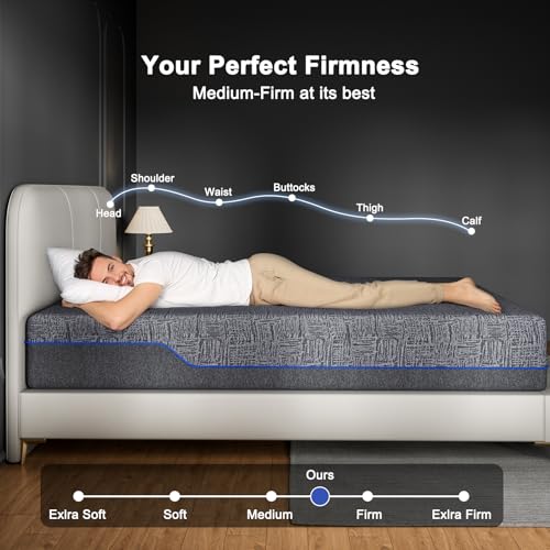 AMADA HOMEFURNISHING 12 Inch Queen Size Memory Foam Mattress, Cooling Sleep & Pressure Relief, Medium Firm Plus Feel & Fiberglass-Free, CertiPUR-US Certified Mattress Bed in a Box
