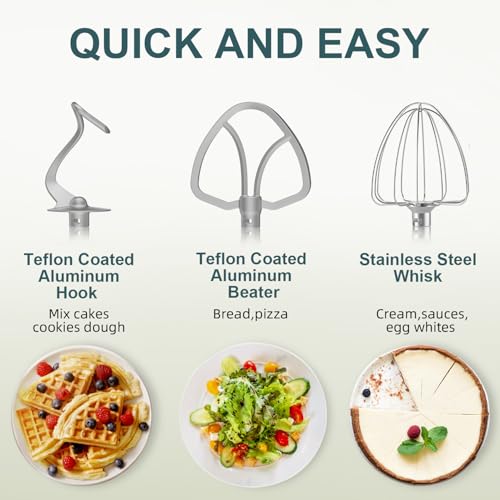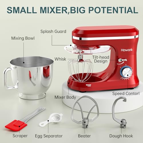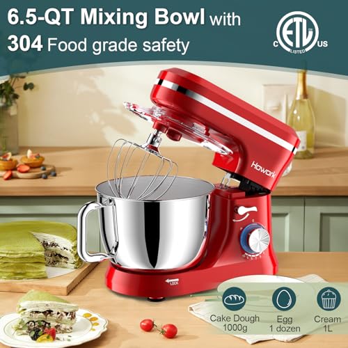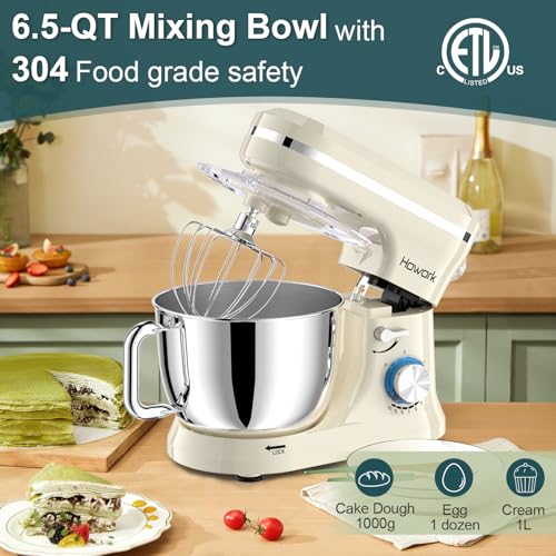 HOWORK Electric Stand Mixer,10+p Speeds With 6.5QT Stainless Steel Bowl,Dough Hook, Wire Whip & Beater,for Most Home Cooks,Blue