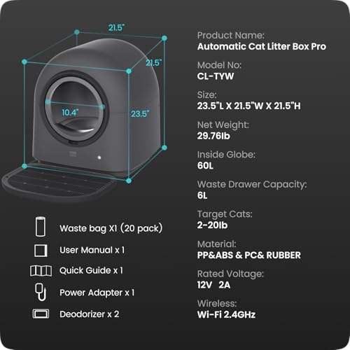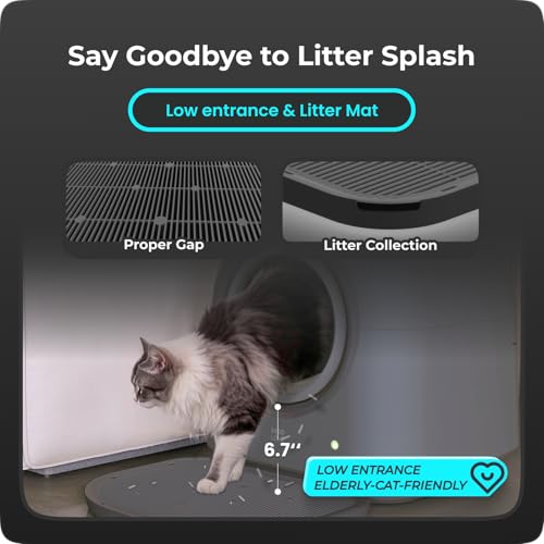 TYPro Self Cleaning Cat Litter Box Automatic Hands-Free Smart Robot self Cleaning Cat Litter Box for Multiple Cats with APP Control Safe with Litter Mat Waste Bags and Deodorizer Dark Grey