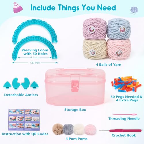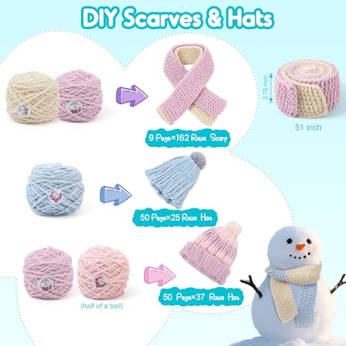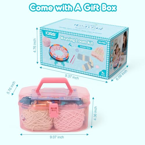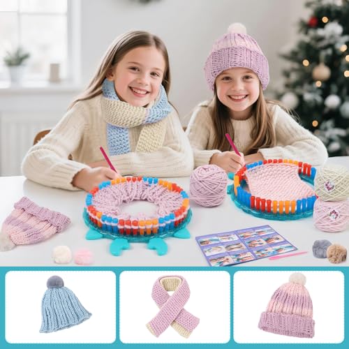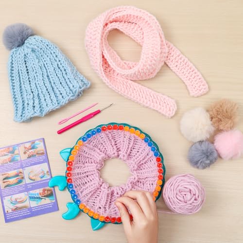 IQKidz Hat Knitting Loom Kit, Kids Craft Kits for Girls Ages 7 8-12 Years and Up, Fun DIY Gift for Girls & Teens to Make Pom Pom Hat and Scarf with Beginner Crochet Set
