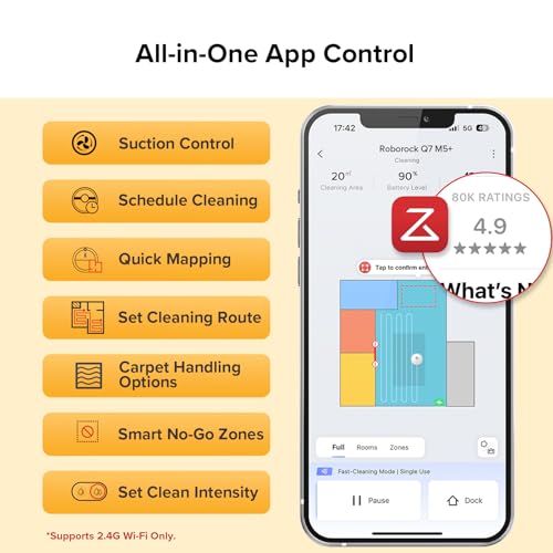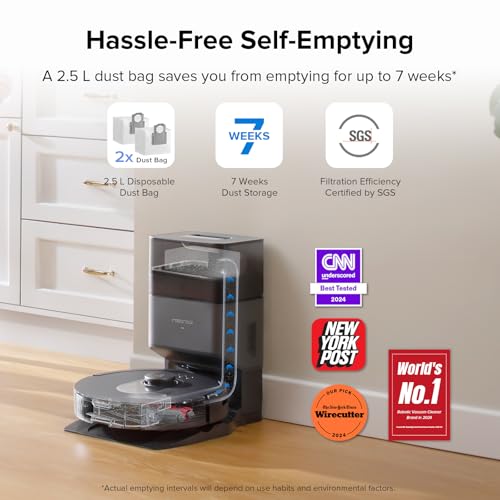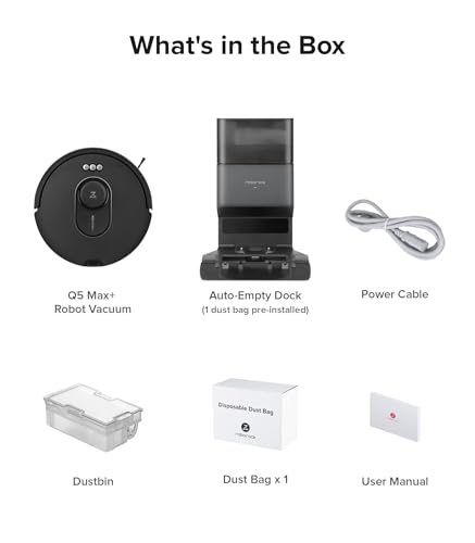 roborock Q5 Max+ Robot Vacuum with Self-Empty Dock, Upgraded from Q5+, 5500 Pa Suction, DuoRoller Brush, Hands-Free Cleaning for up to 7 Weeks, PreciSense LiDAR Navigation, App & Voice Control