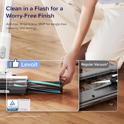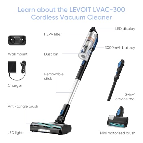 LEVOIT Cordless Vacuum Cleaner, Stick Vac with Tangle-Resistant Design, Up to 50 Minutes, Powerful Suction, Rechargeable, Lightweight, and Versatile for Carpet, Hard Floor, Pet Hair, LVAC-200
