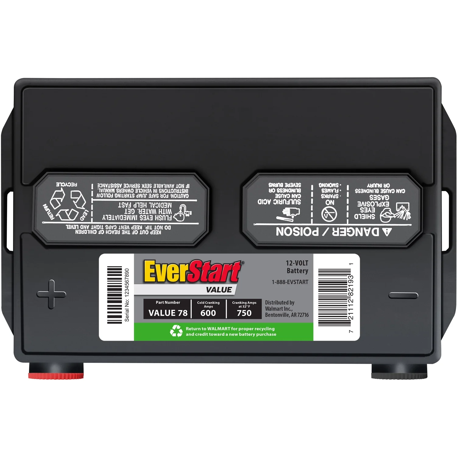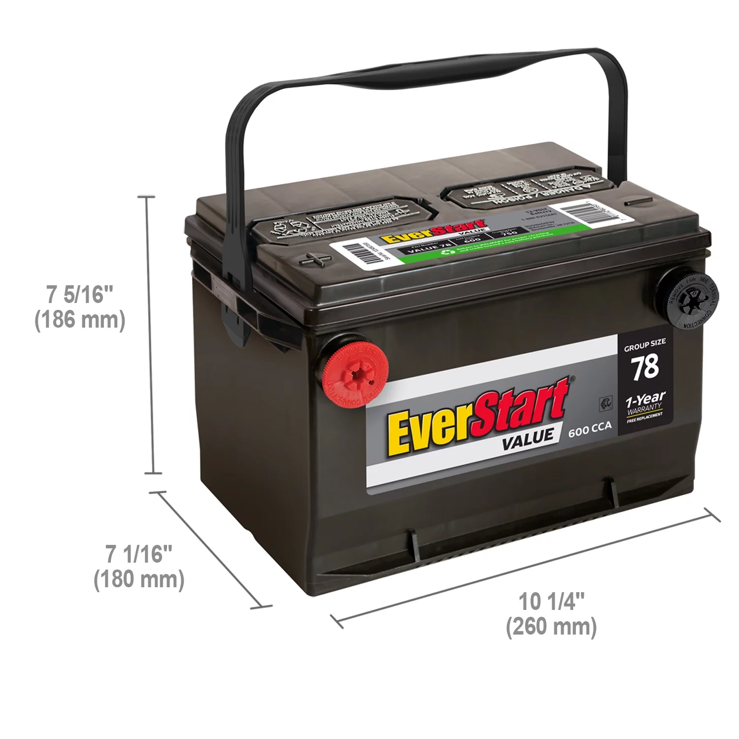 EverStart Value Lead Acid Automotive Battery, Group Size 78 12 Volt, 600 CCA