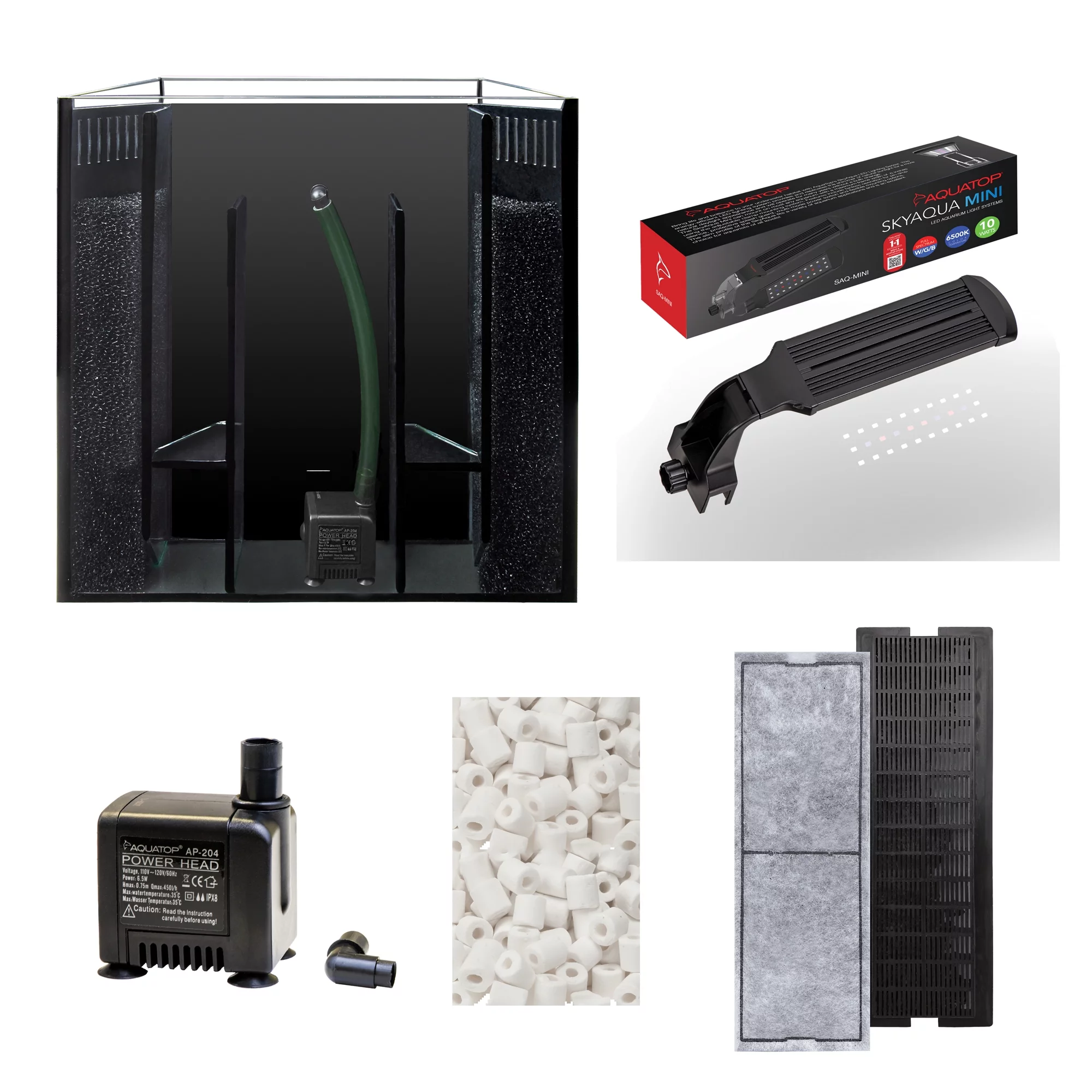 Aquatop Bow Front 5 Gallon Glass Aquarium Desktop Fish Tank, All In One with Pump and LED Light, BFT-05