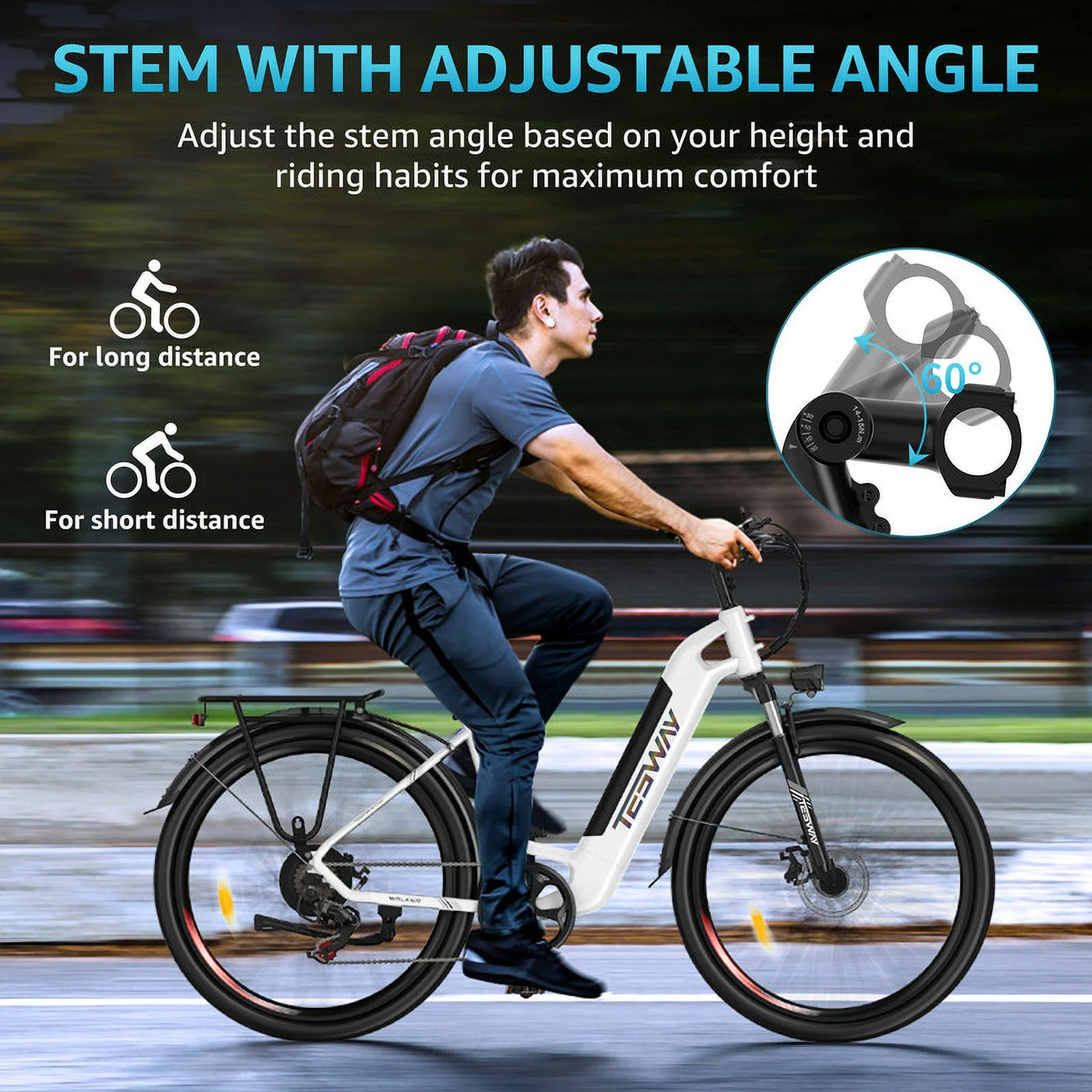 TESWAY 27.5" Electric Bike【BAFANG MOTOR】500W Powerful PAS Assisted Ebike 48V 12AH Long Range Ultimate Commuter E-bike, Step-Thru City Electric Bike for Adults