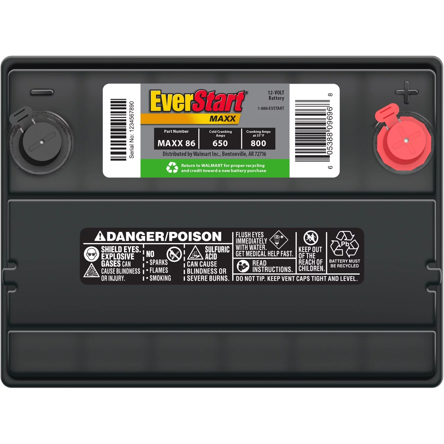EverStart Maxx Lead Acid Automotive Battery, Group Size 86 12 Volt, 650 CCA