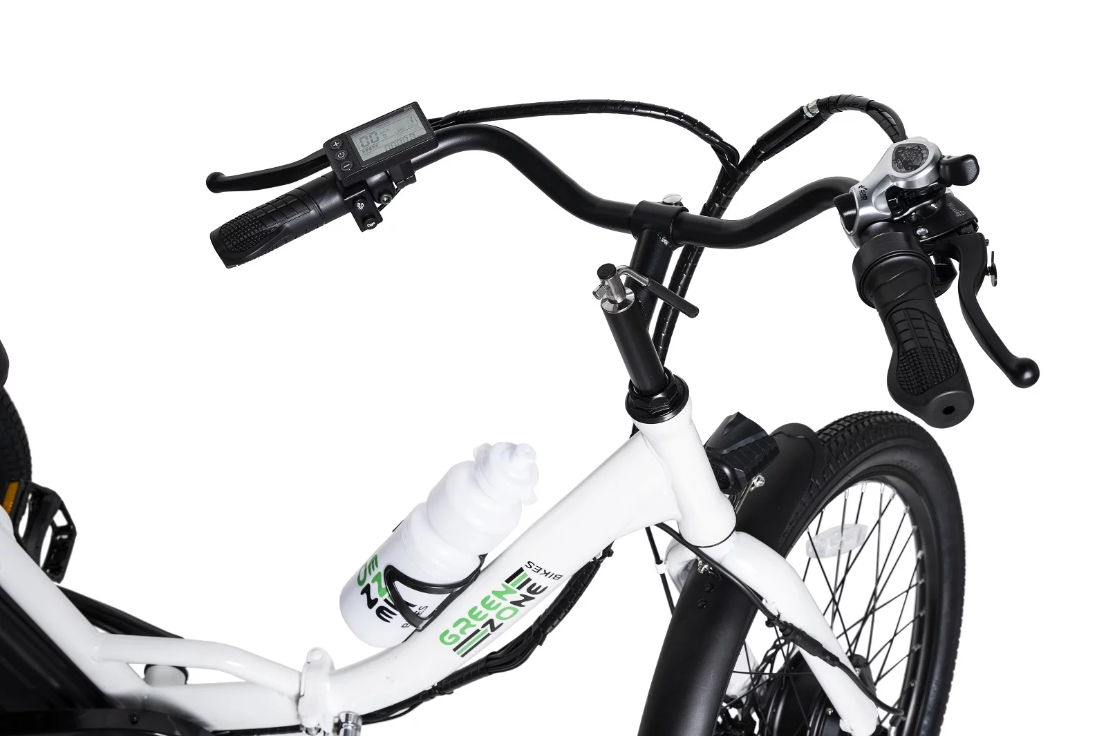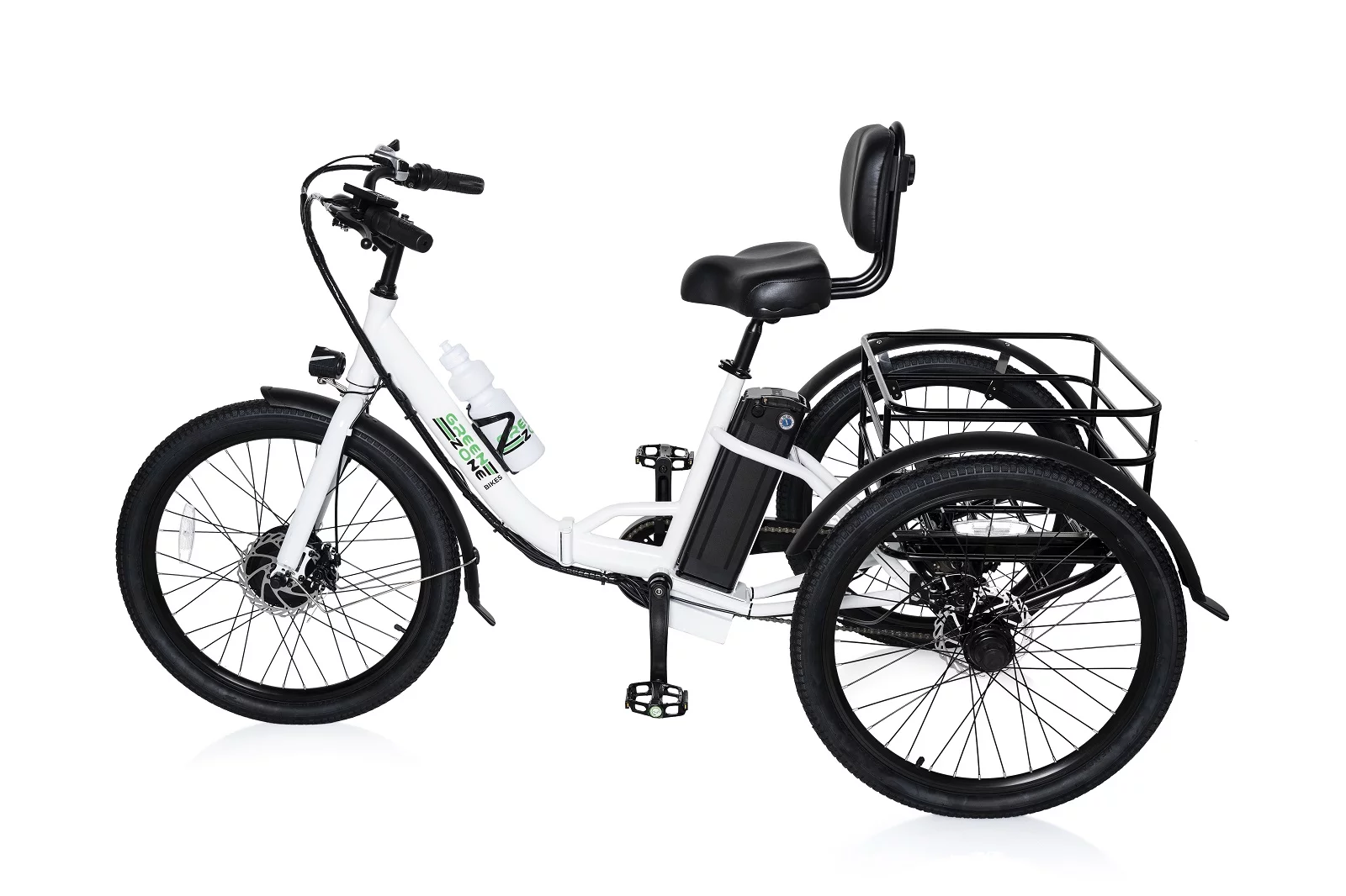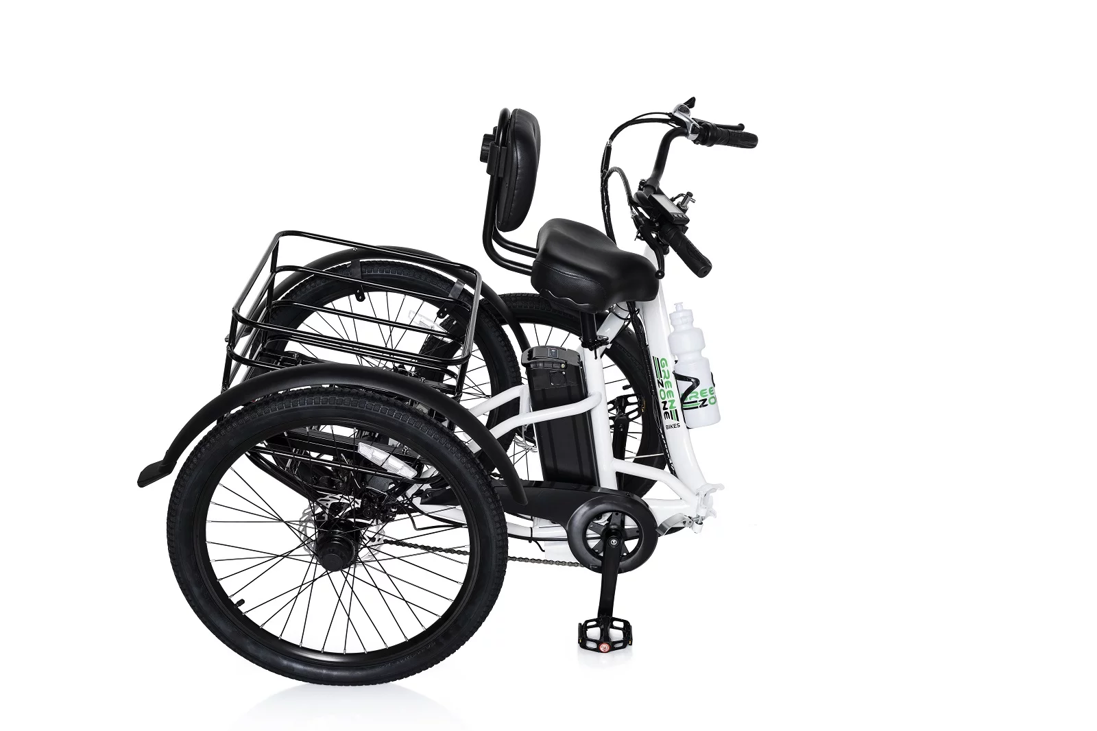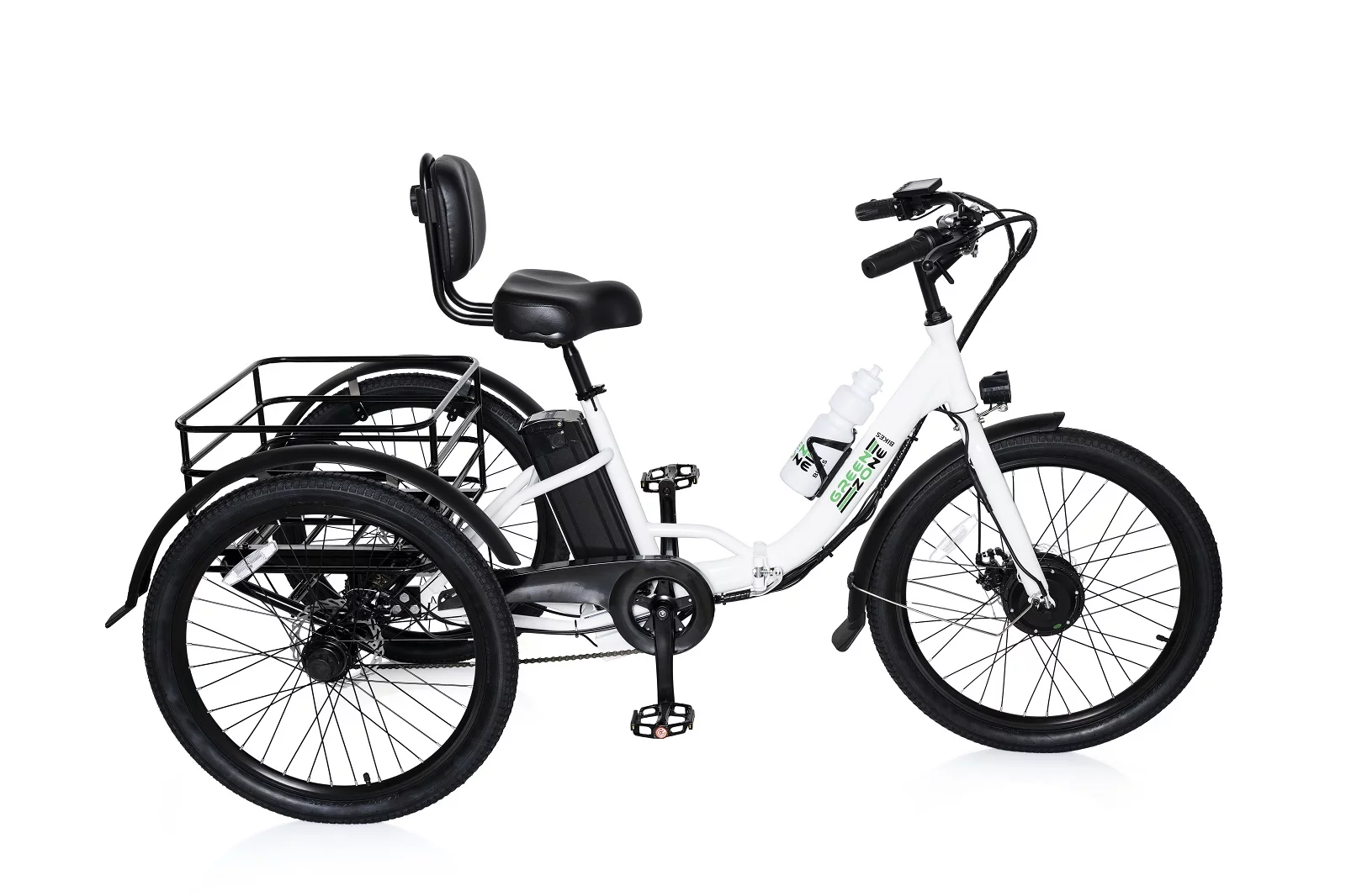 24" Electric Folding Tricycle for Adults & Seniors, 7-Speed, 3 Wheels Trike, 350W Motor, Black & White - Green Zone Bikes