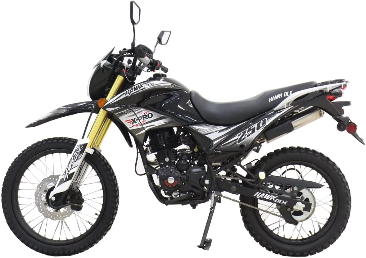X-Pro Brand New Hawk Dlx 250cc Dirt Bike, 5 Manual Transmission Electric/Kick Start, 21"/18" Wheels
