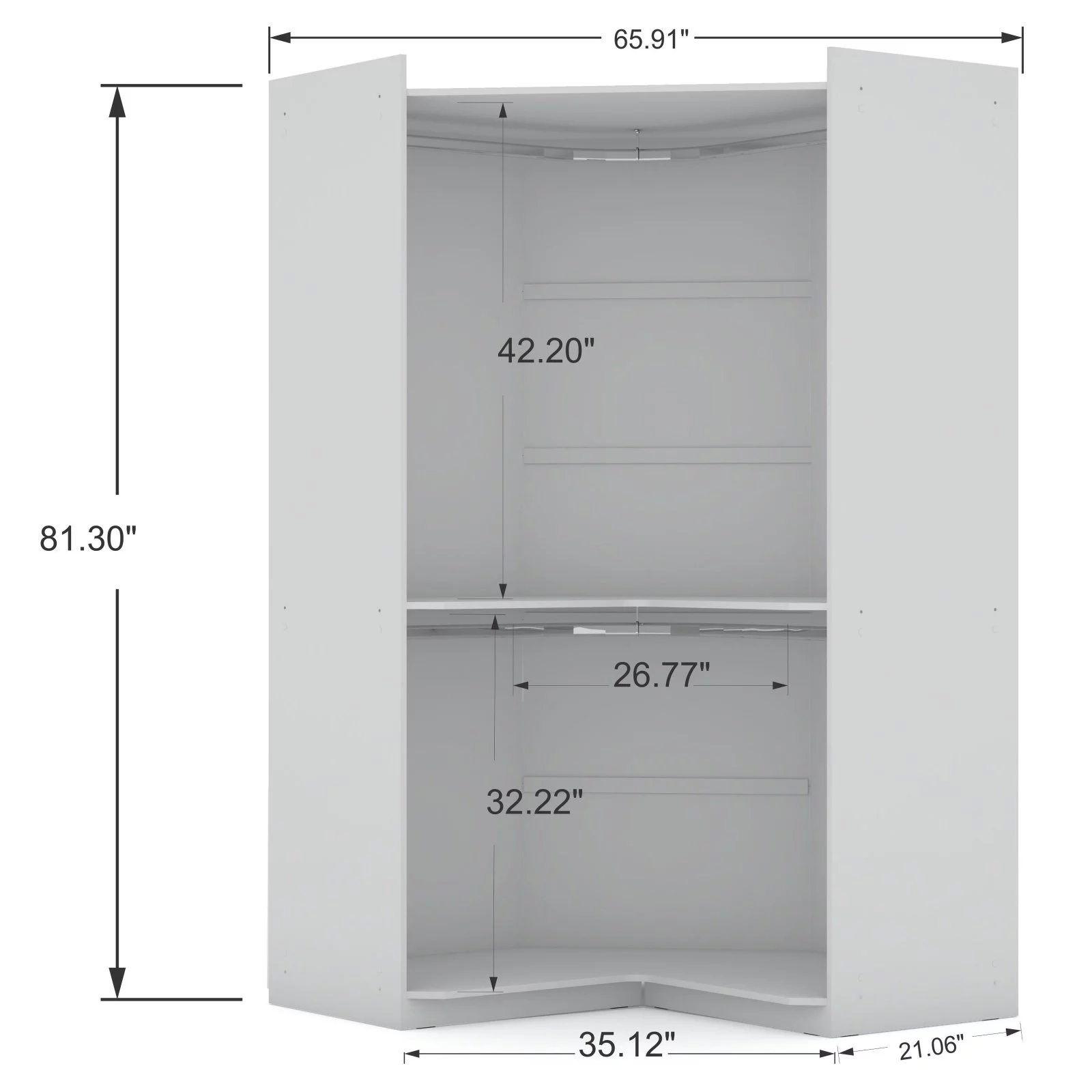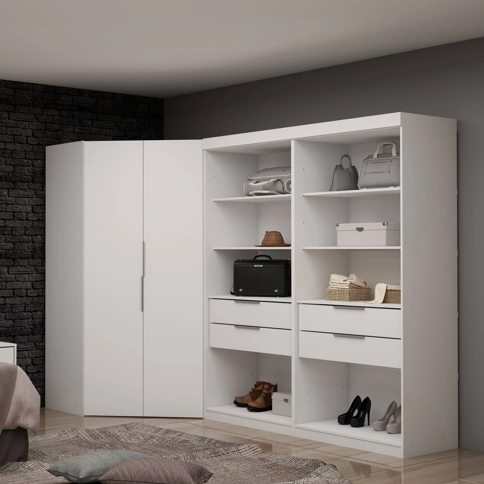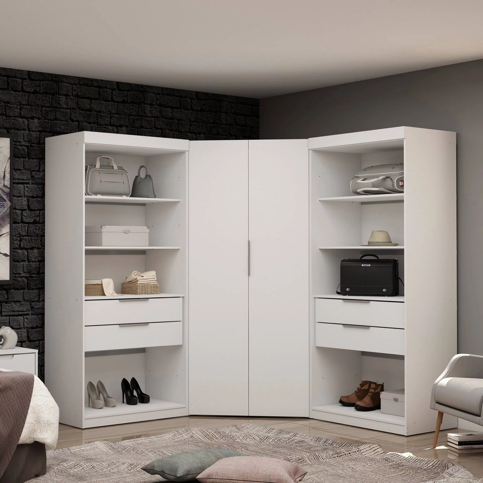 Manhattan Comfort Mulberry 2.0 Semi Open 3 Sectional Modern Wardrobe Corner Closet with 4 Drawers - Set of 3 in White