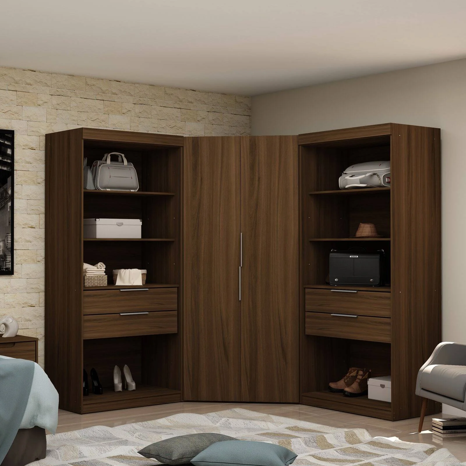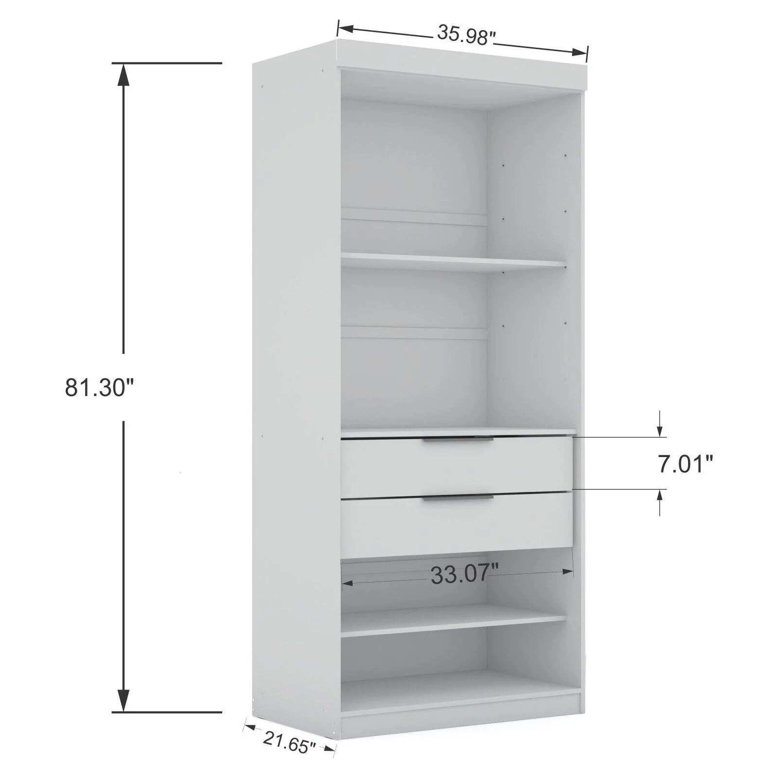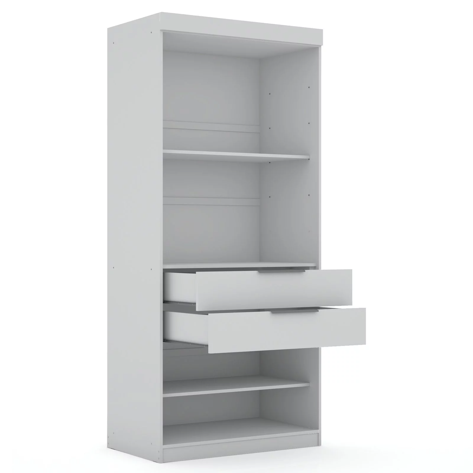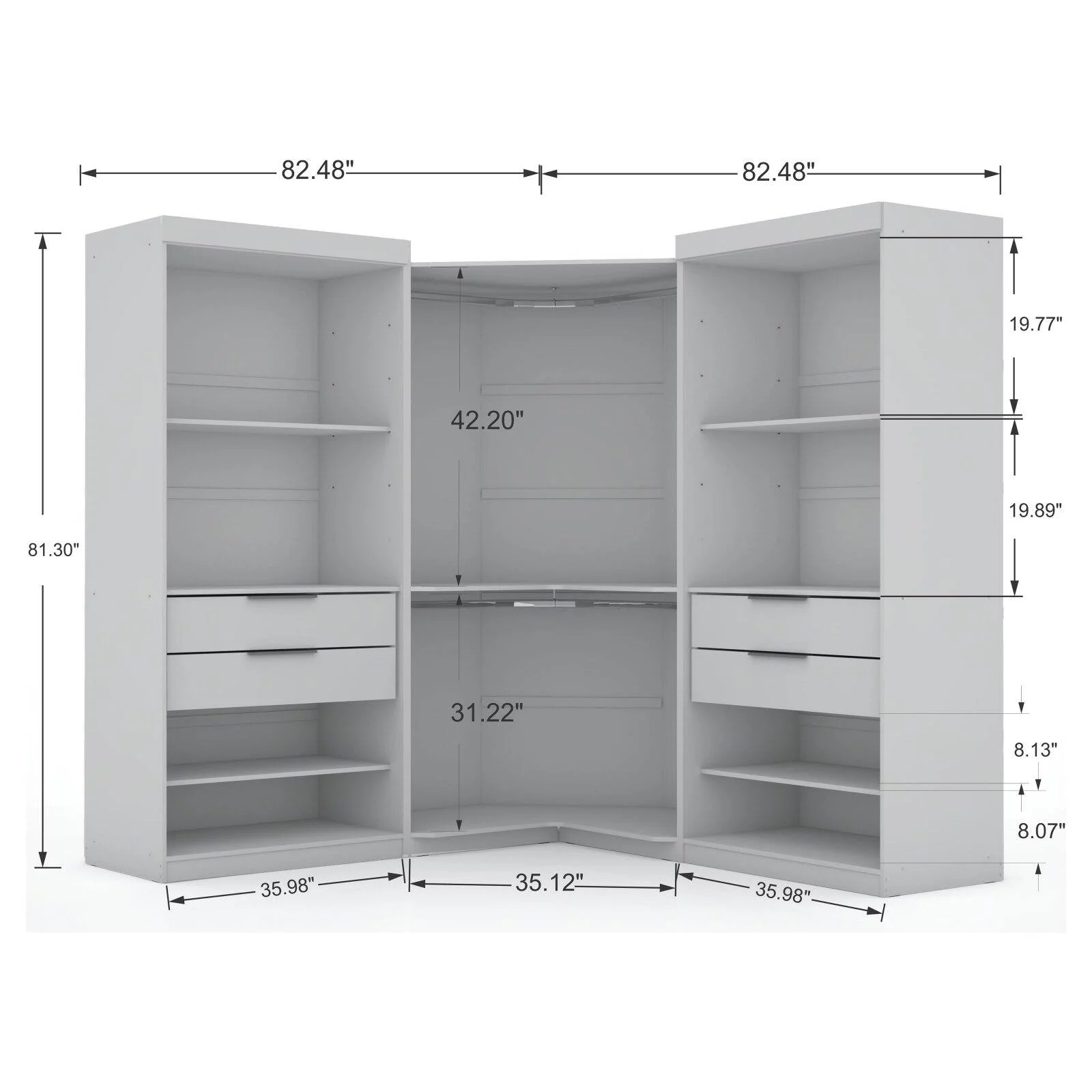 Manhattan Comfort Mulberry 2.0 Semi Open 3 Sectional Modern Wardrobe Corner Closet with 4 Drawers - Set of 3 in White