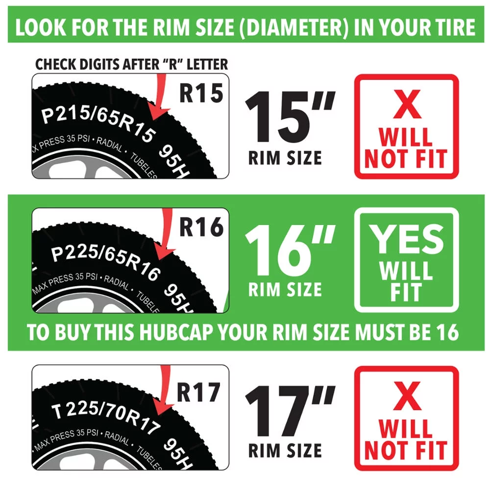 (4-Pack) BDK Premium Hubcaps 16" Wheel Rim Cover Hub Caps OEM Style Replacement Snap On Car Truck SUV - 16 Inch Set