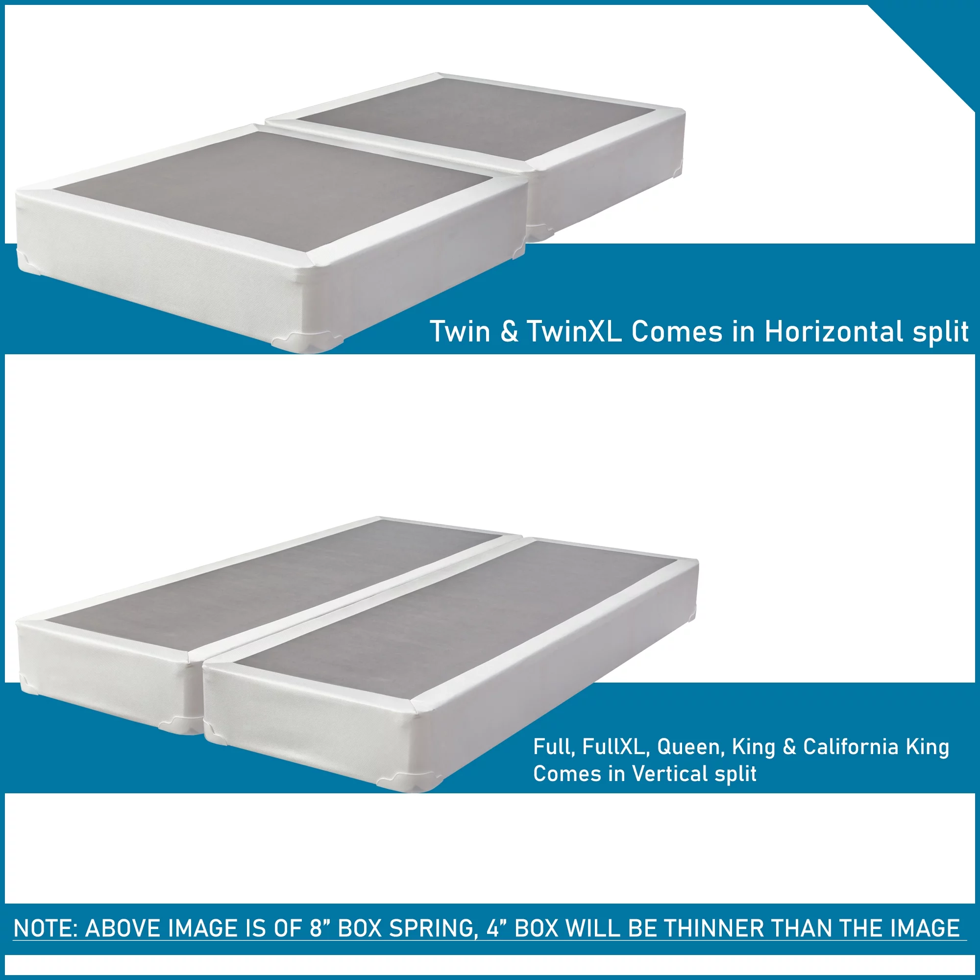 Wayton, 4" Split Fully Assembled Wood Box Spring for Mattress, Twin, White