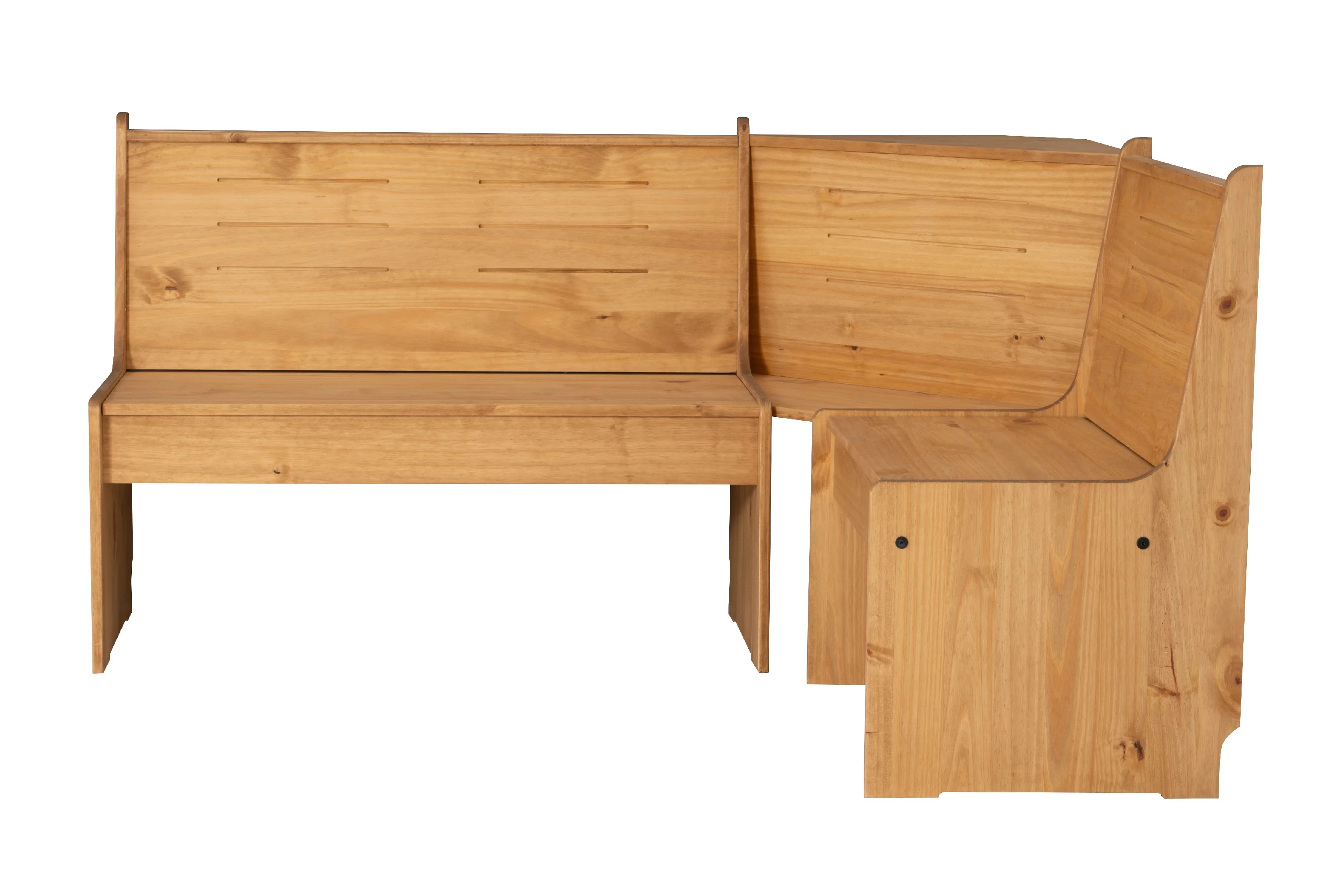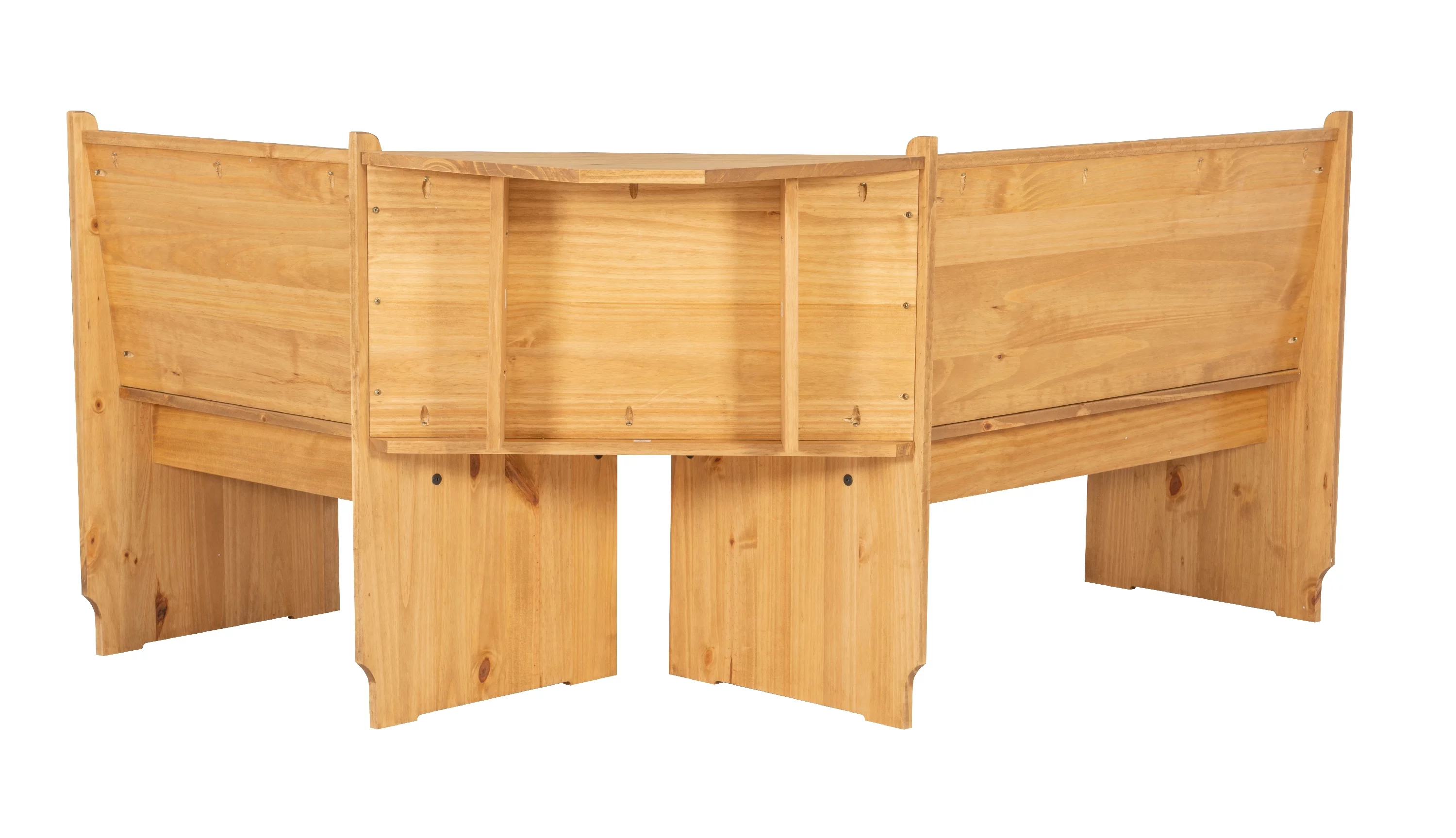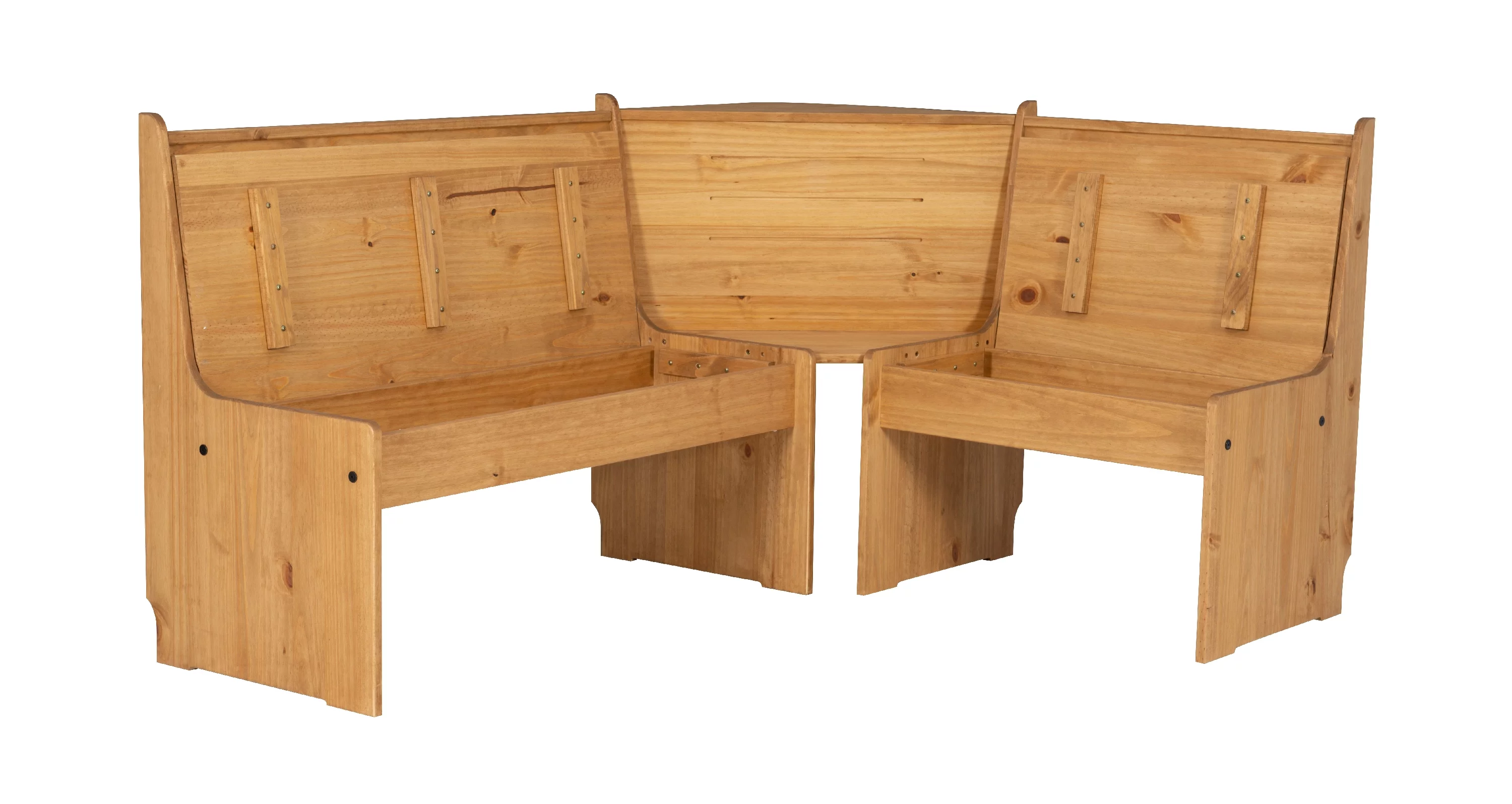 Linon Wickford Corner Dining Breakfast Nook Set with Storage, Table, and Bench, Seats 5-6, Natural Finish