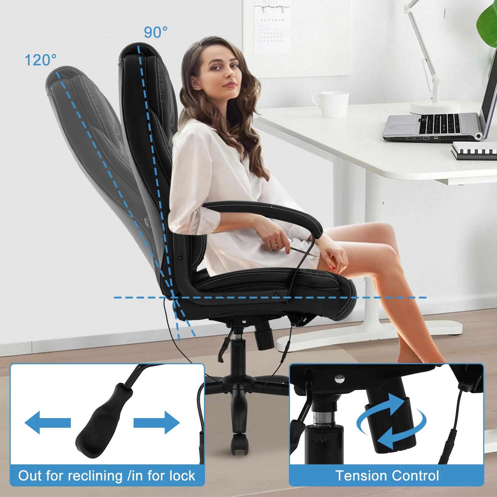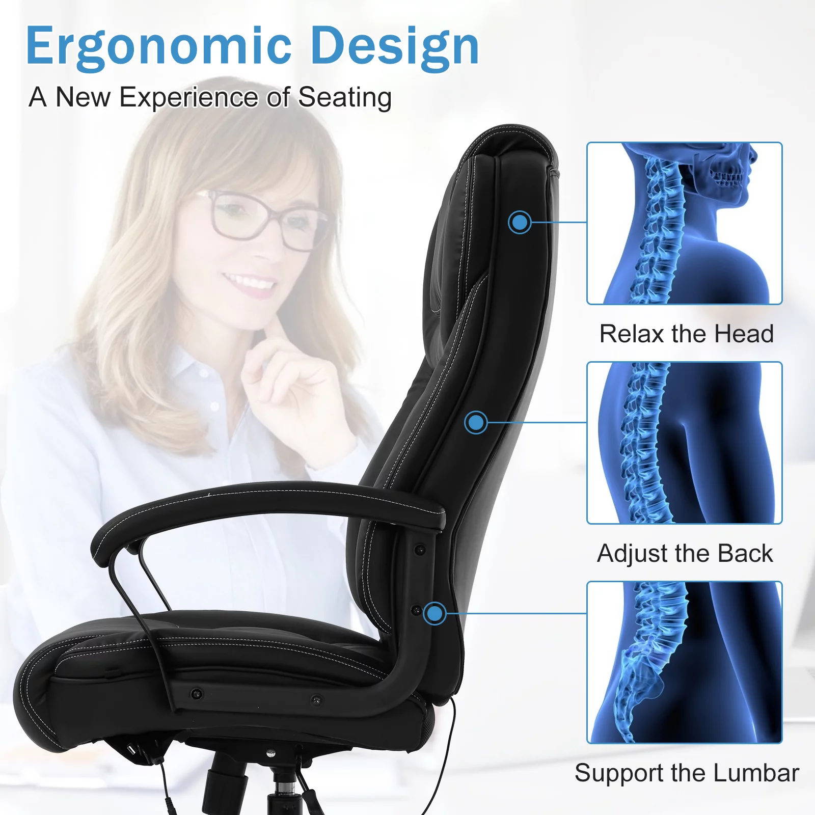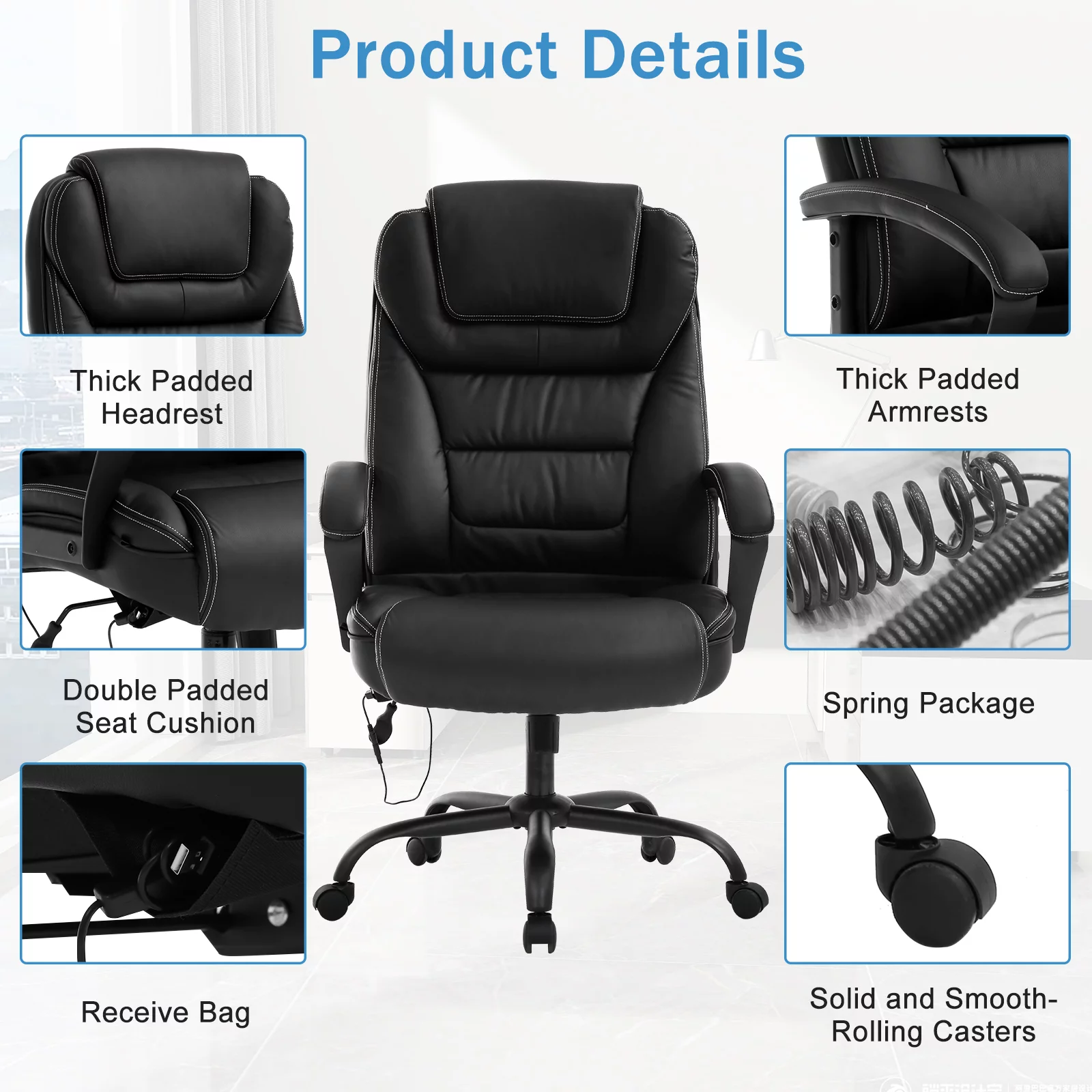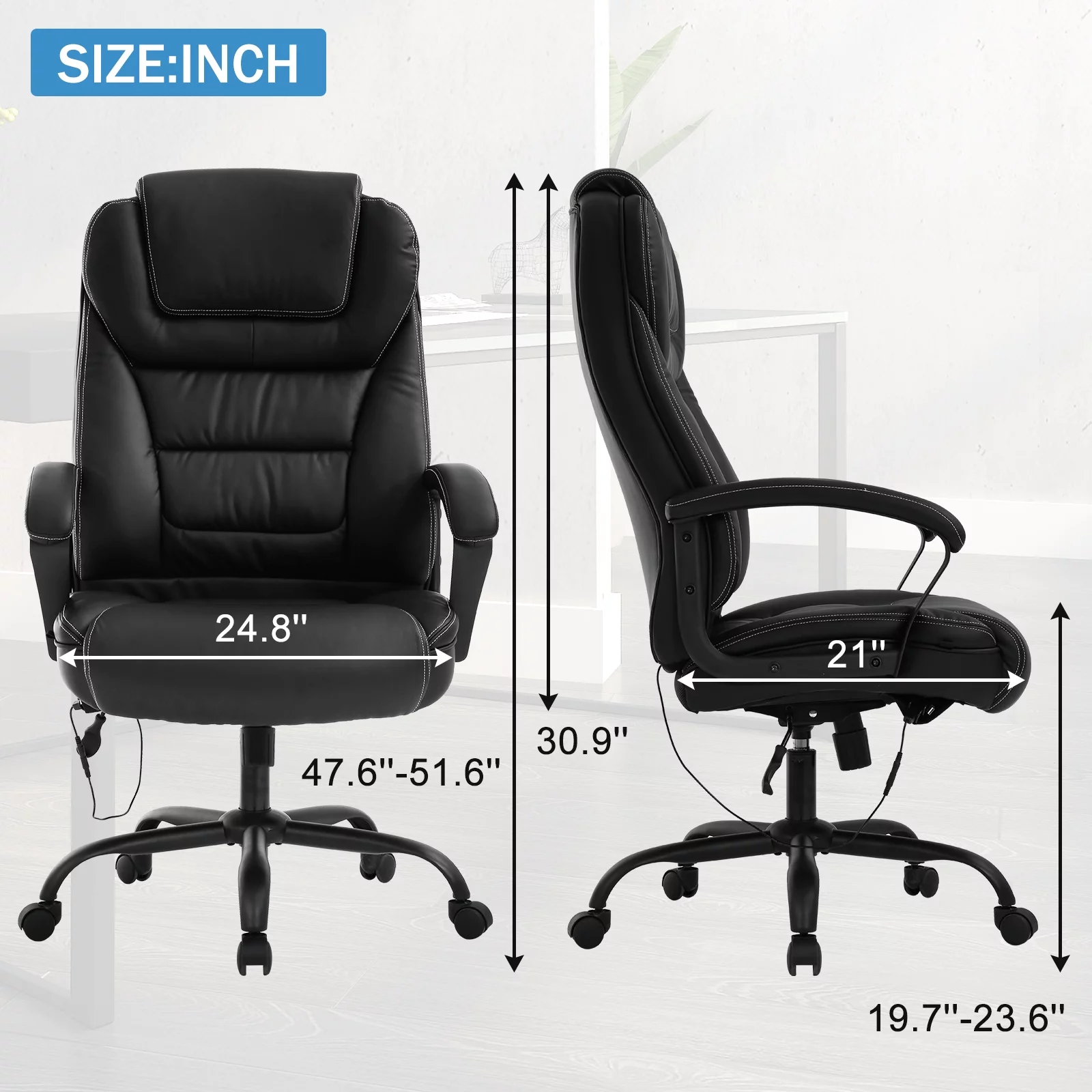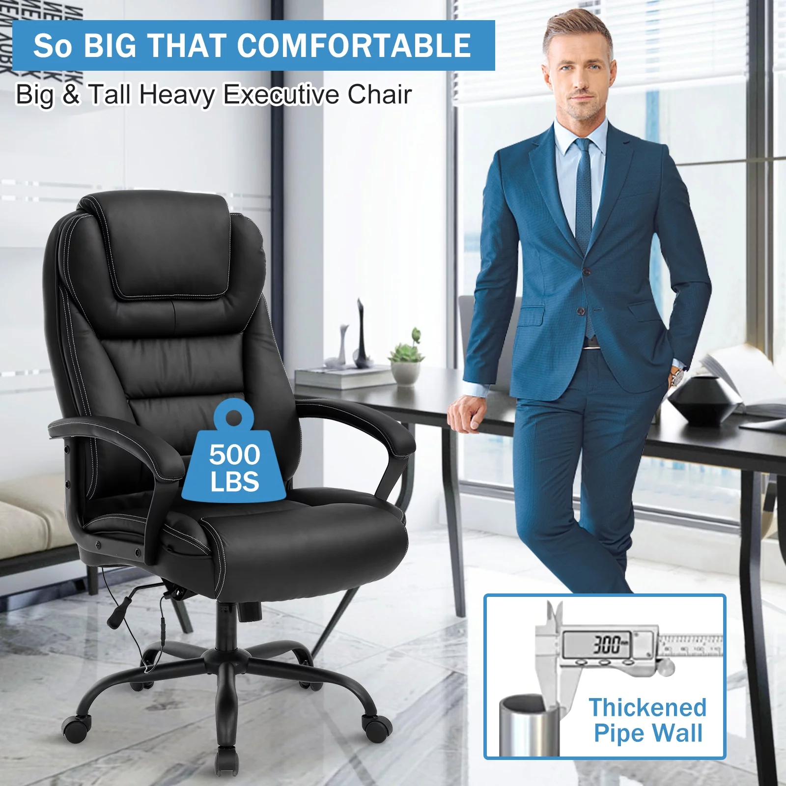 Big and Tall Office Chair 500 lbs Capacity with Massage, Heavy Duty Ergonomic Office Chair High Back Desk Chairs for Adults Computer Chair with Arms Lumbar Support Leather Task Chair Heavy People