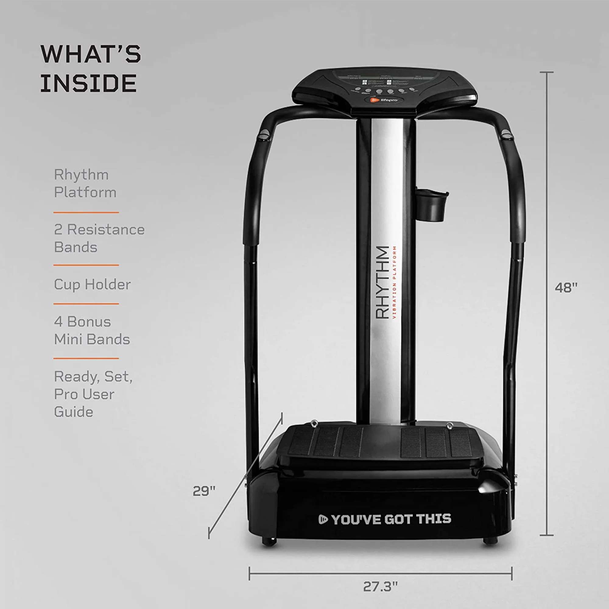 Lifepro Rhythm Vibration Plate Full Body Workout Equipment with Resistance Bands, Black
