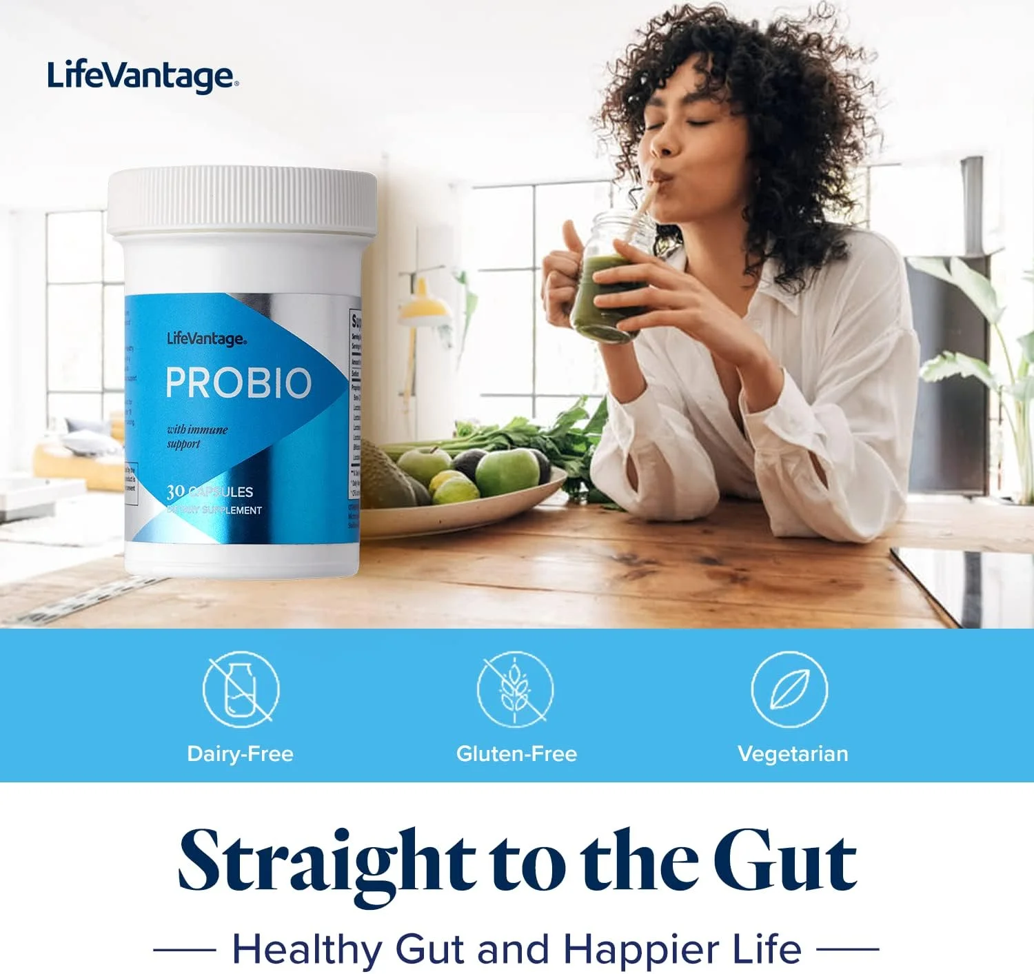 LifeVantage ProBio - Probiotics for Digestive Health with Immune Support, 6 Probiotic Strains, Beta-1,3/1,6-Glucans from Baker’s Yeast & Delayed-Release Capsules to Support Gut Health, 30 Capsules