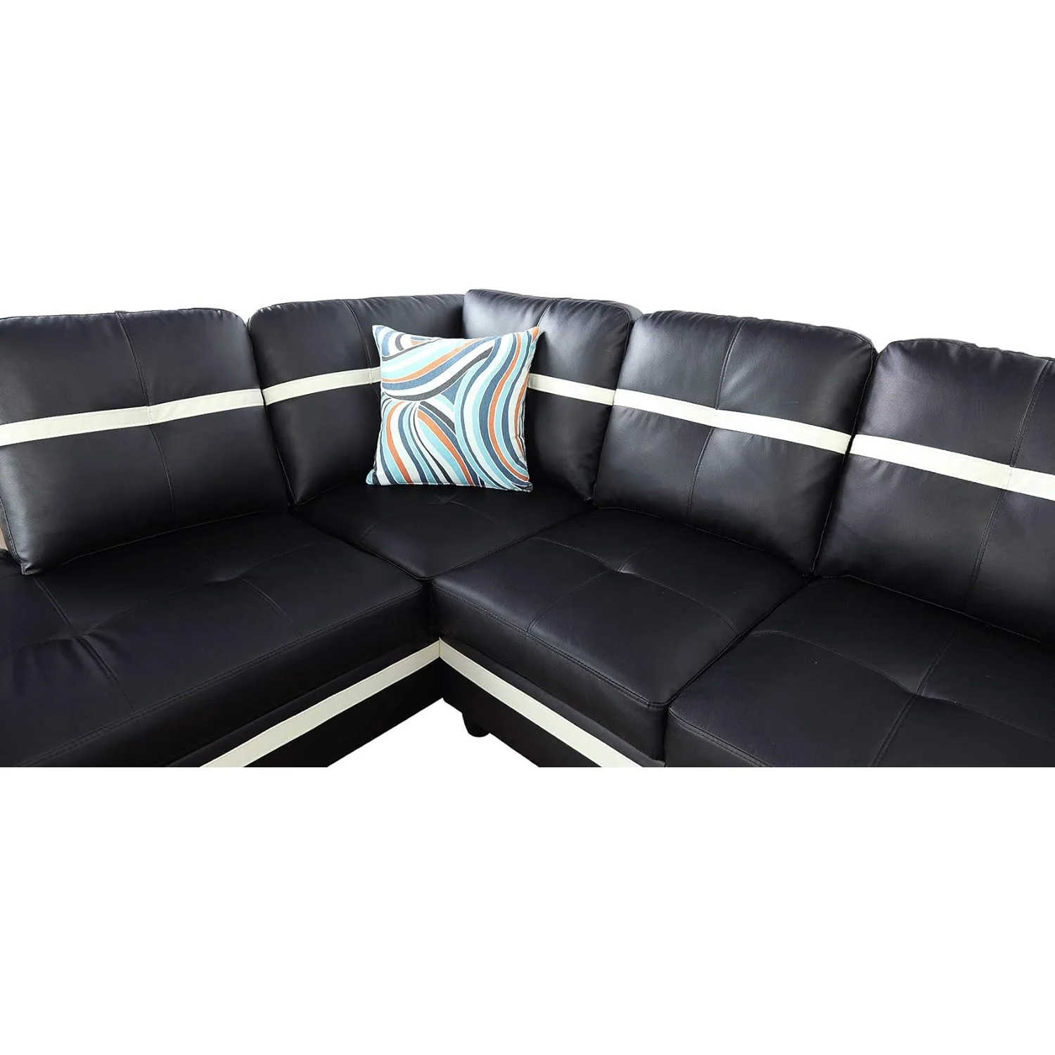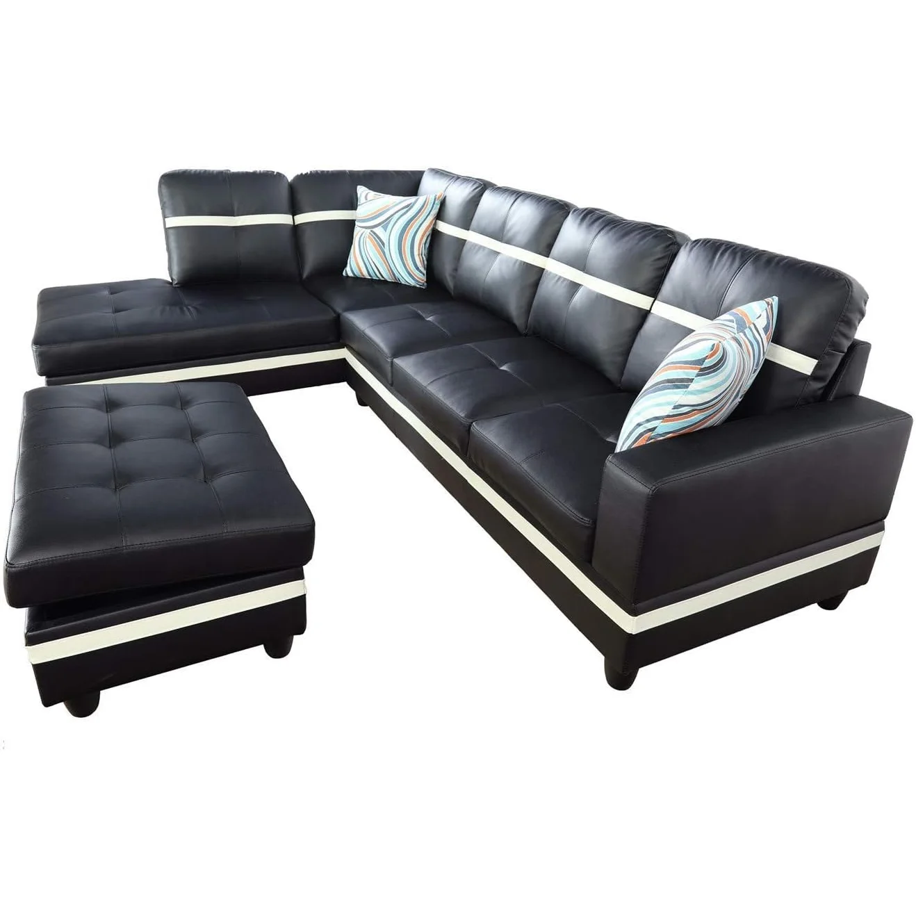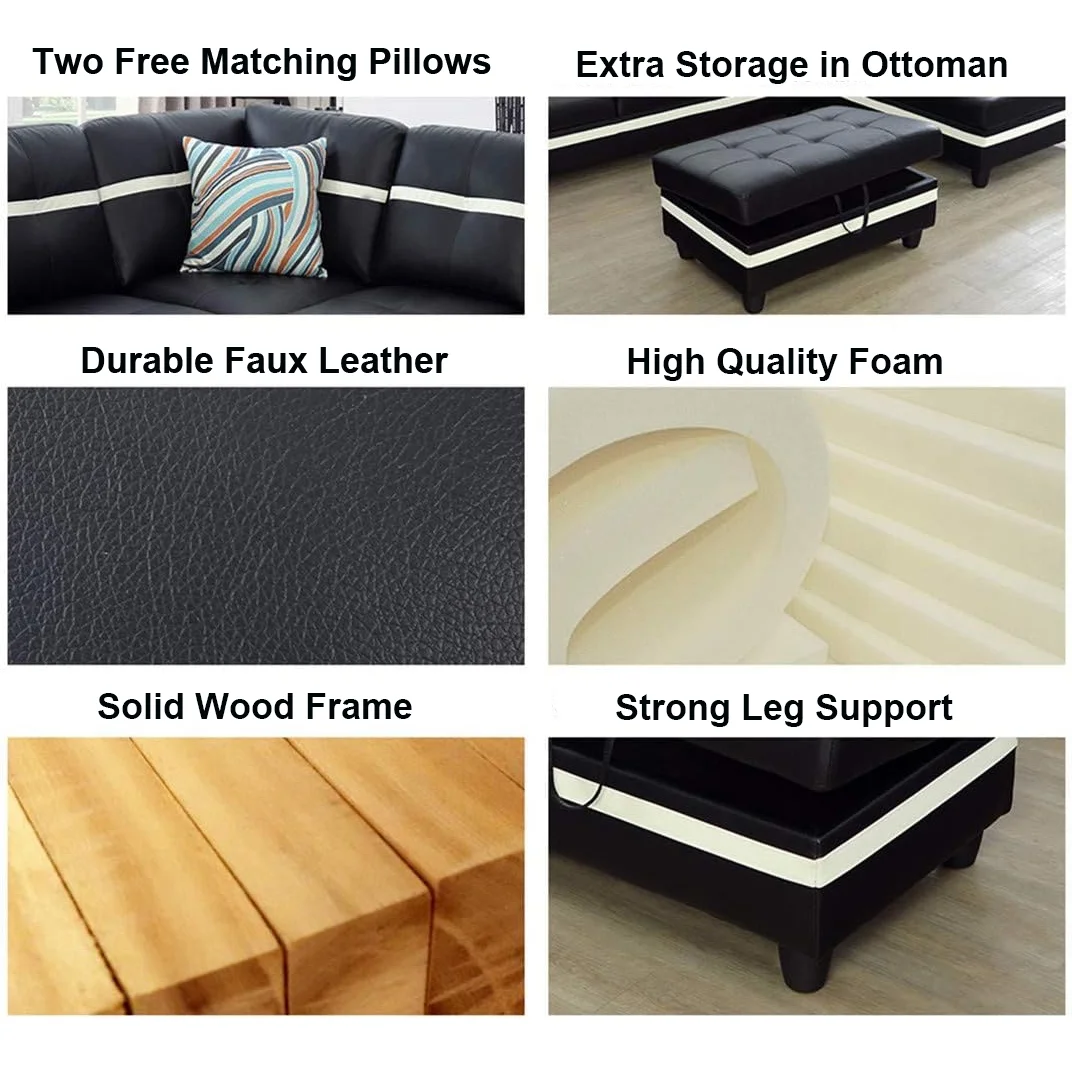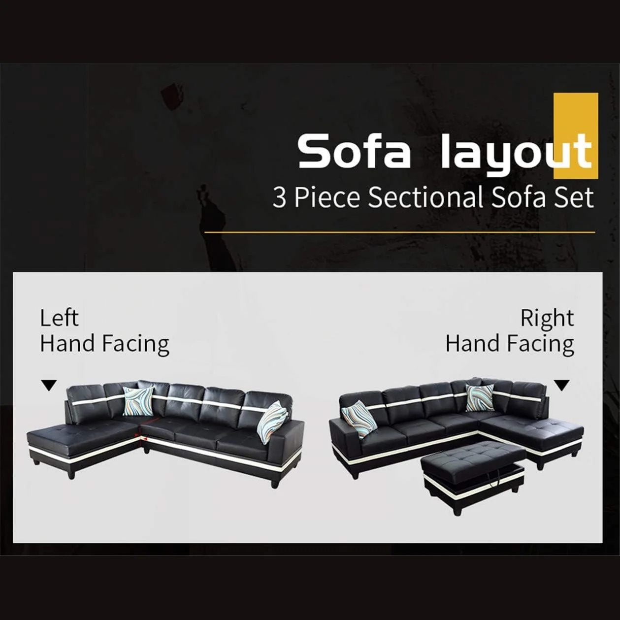 Ainehome 103.5" Leather Sectional Sofa Set, 3-Piece L-Shaped Living Room Couch Sets with Chaise Storage Ottoman and Pillows, Black