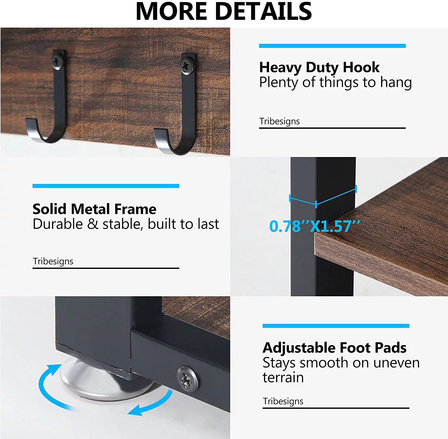 Tribesigns Hall Tree with Bench, 3 Storage Cubbies, 7 Hooks for Entryway, Hallway
