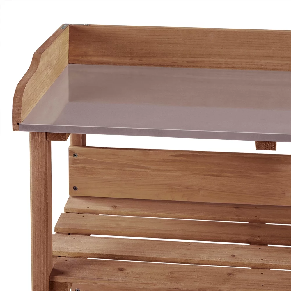 Easyfashion Outdoor Potting Bench Table with Storage Shelf,Brown