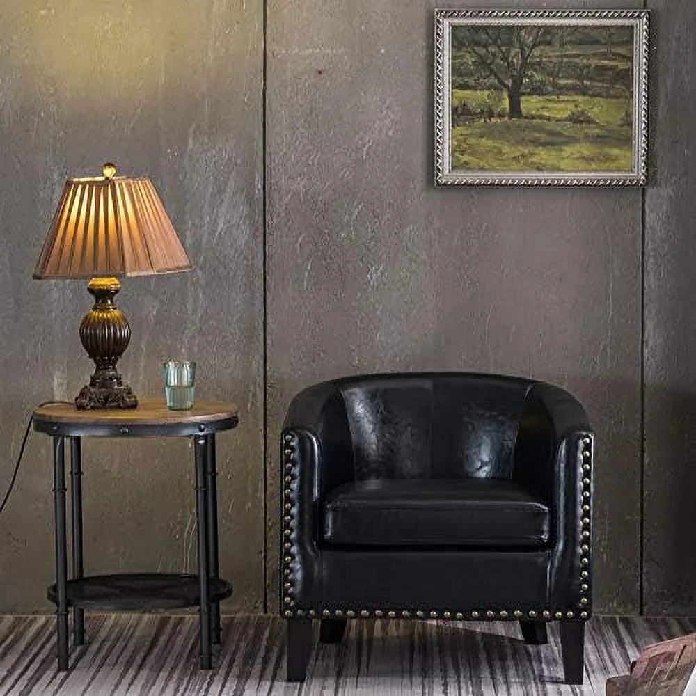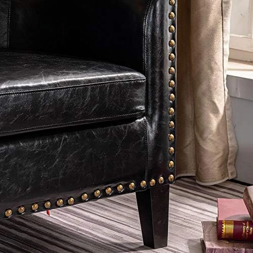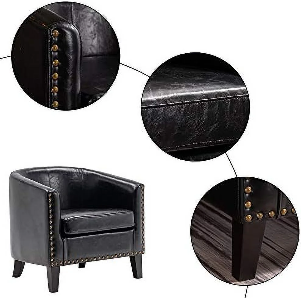 TJUNBOLIFE Elegant Barrel Chairs Set of 2 Faux Leather Bucket Chairs Accent Chairs for Living Room Upholstered Tub Chairs Fireside Charis Corner Chairs in Antique Style for Bedroom/Offi