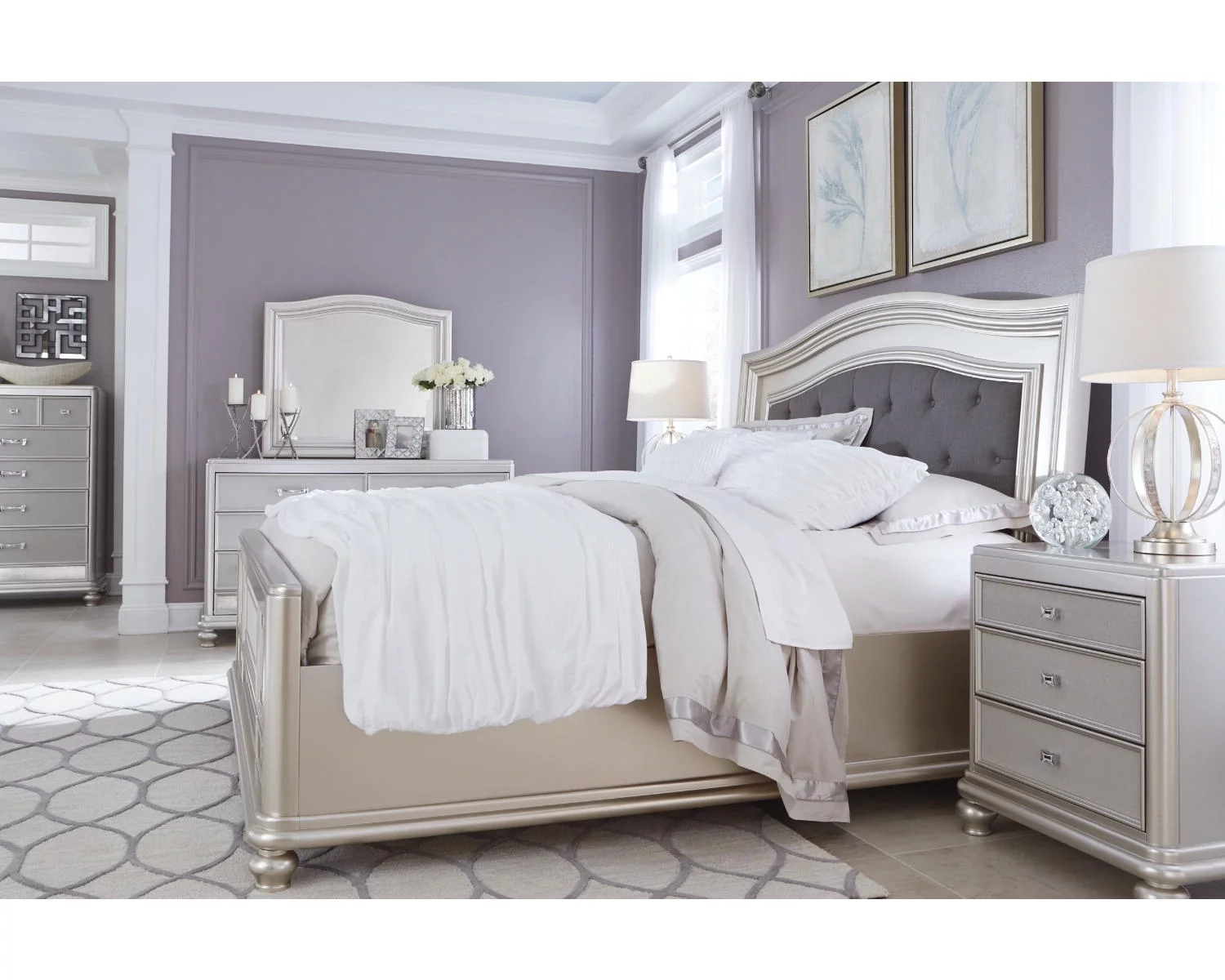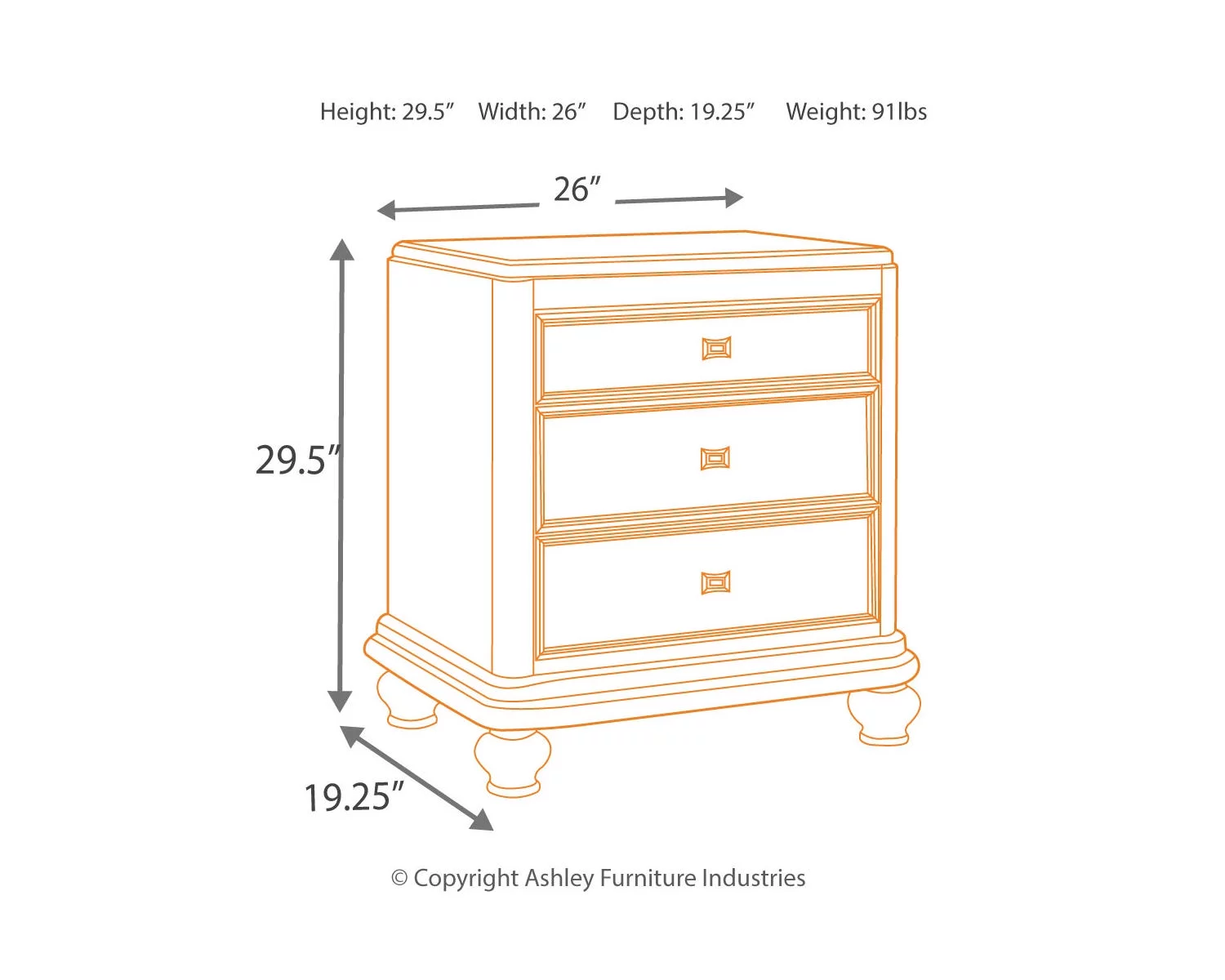 Signature Design by Ashley Traditional Coralayne 3 Drawer Nightstand, Silver