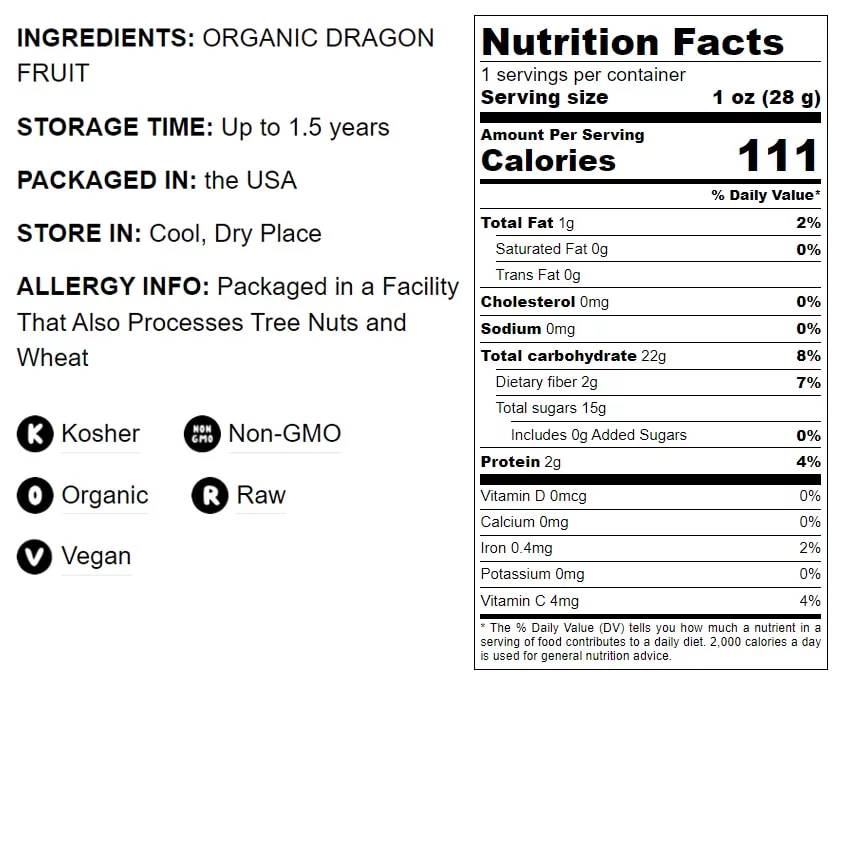 Organic Dried Red Dragon Fruit, 1 Pound – Non-GMO, Kosher – by Food to Live