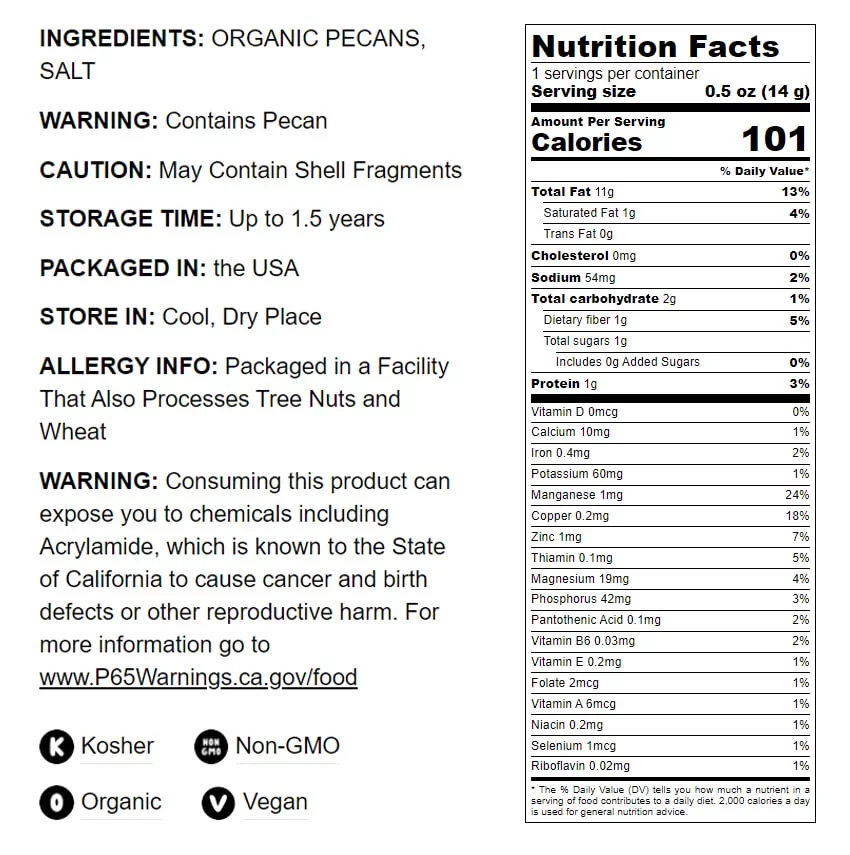 Organic Roasted Pecan Halves with Himalayan Salt, 1 Pound — Non-GMO, Kosher, Vegan — by Food to Live