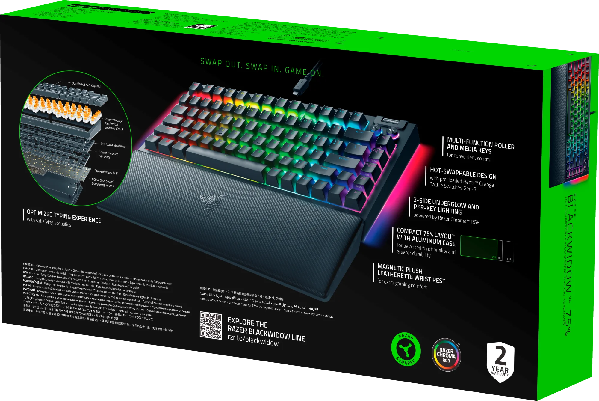 Razer BlackWidow V4 75% Hot-Swappable Mechanical Gaming Keyboard, RGB Chroma, Black