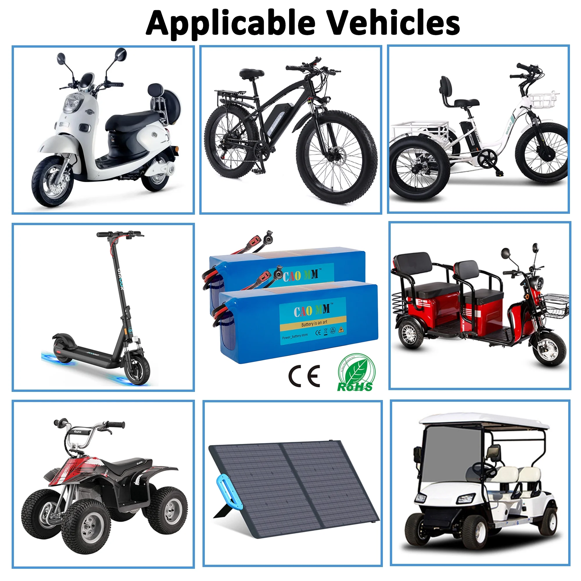 Ebike Battery 48V 20Ah Lithium Battery with Charger XT-90 48V Battery for 1200W Electric Bike Motorcycle