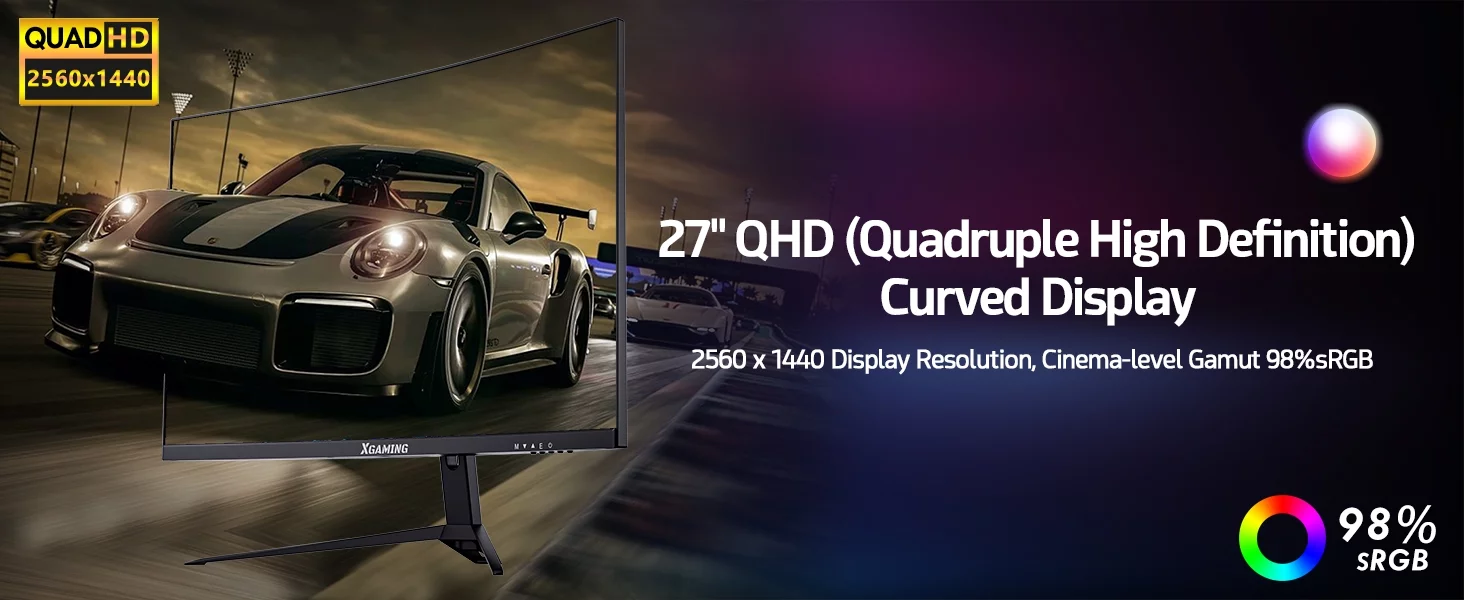 Xgaming 27-inch 165Hz/144Hz Curved Gaming Monitor, Ultra Wide 16:9 1440p PC Monitor for Laptop with 2*Speakers, 1ms AMD, QHD2K(2560 x 1440p) HDR Computer Monitor Support VESA, HDMI&DP, Metal Black
