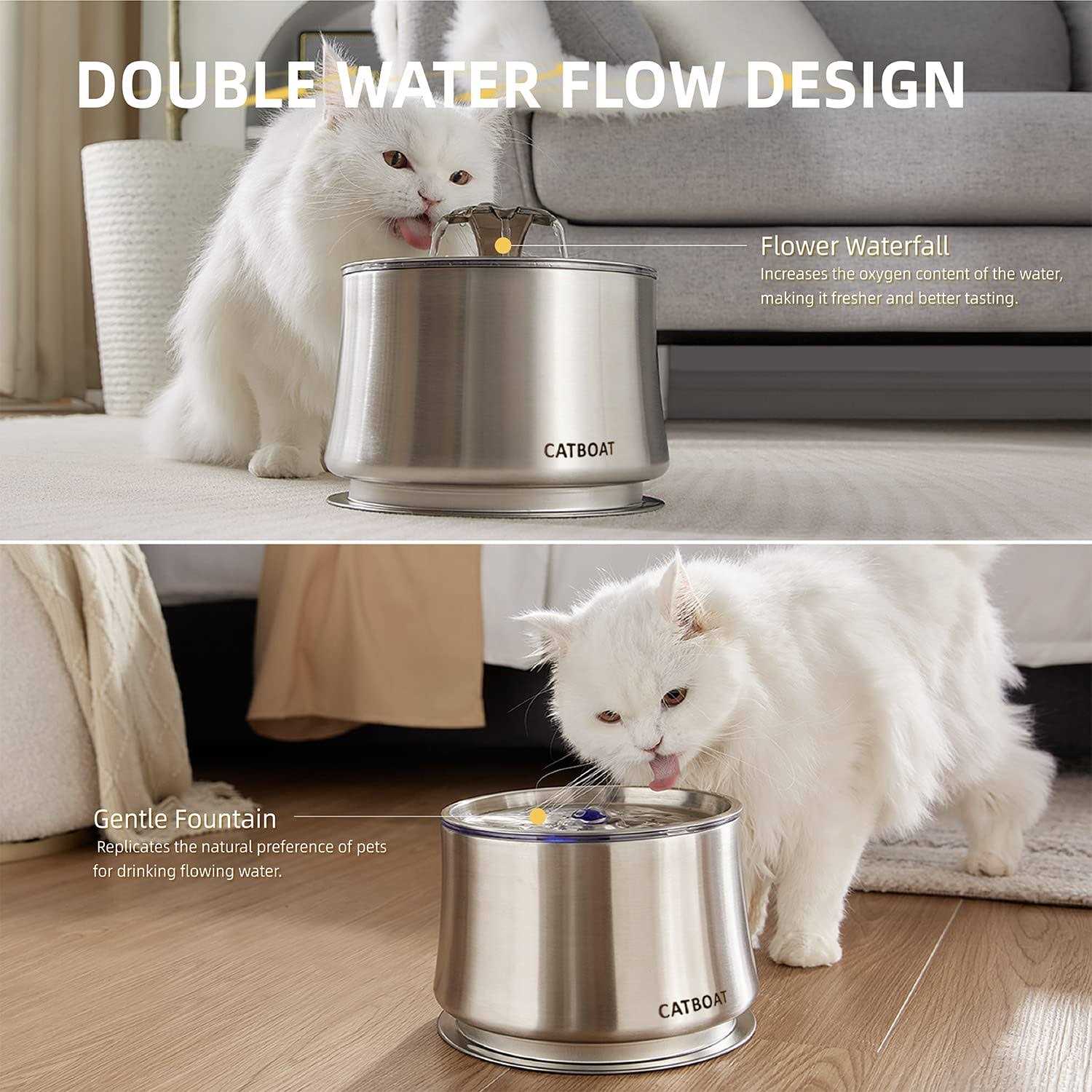 CATBOAT Cat Water Fountain Stainless Steel 84oz/2.5L for Pets Inside - Pet Supplies online store