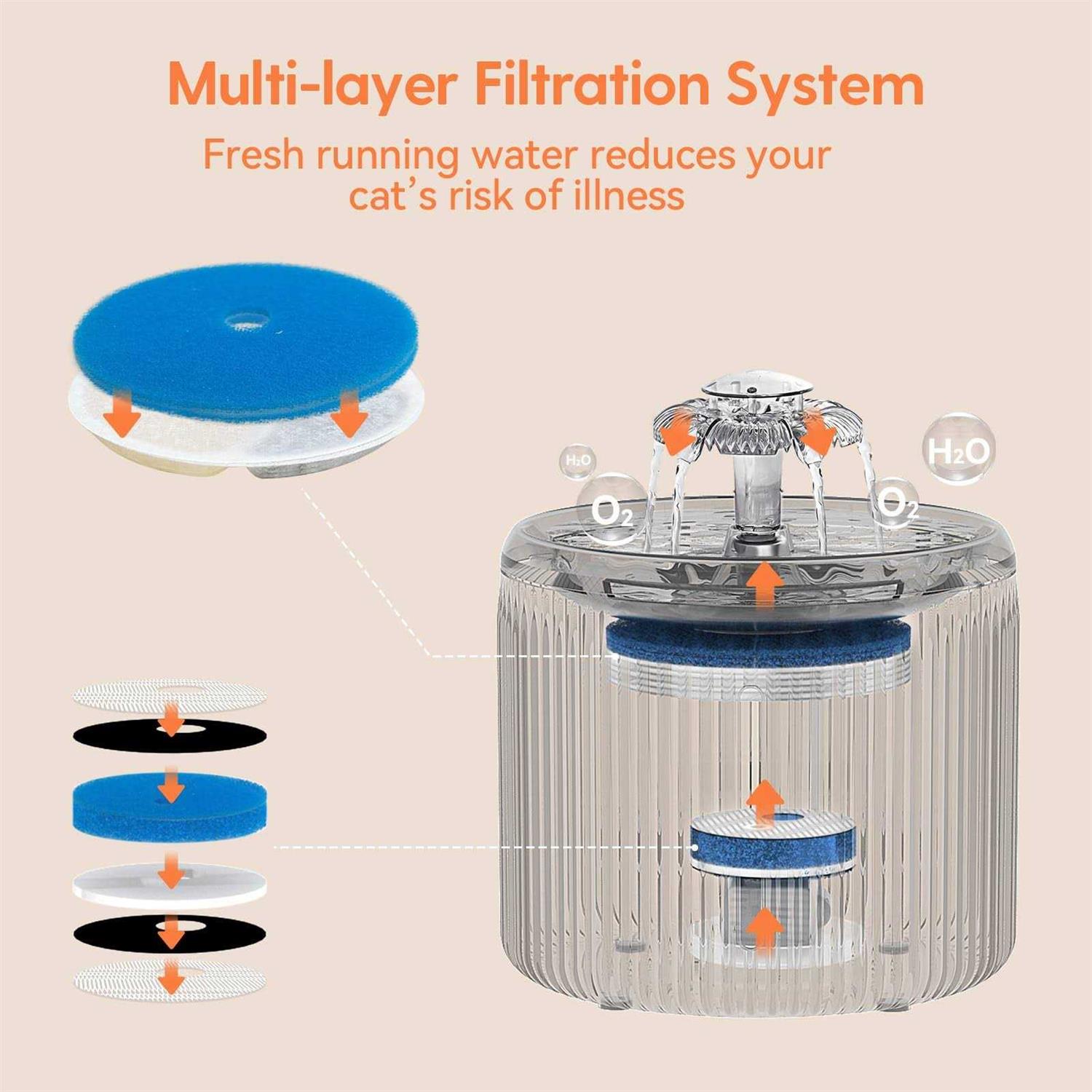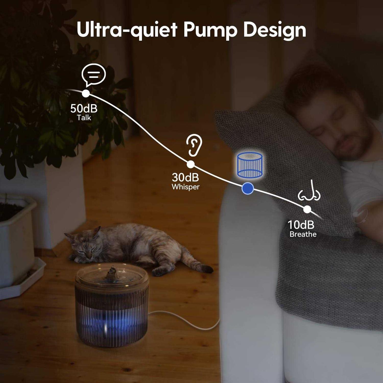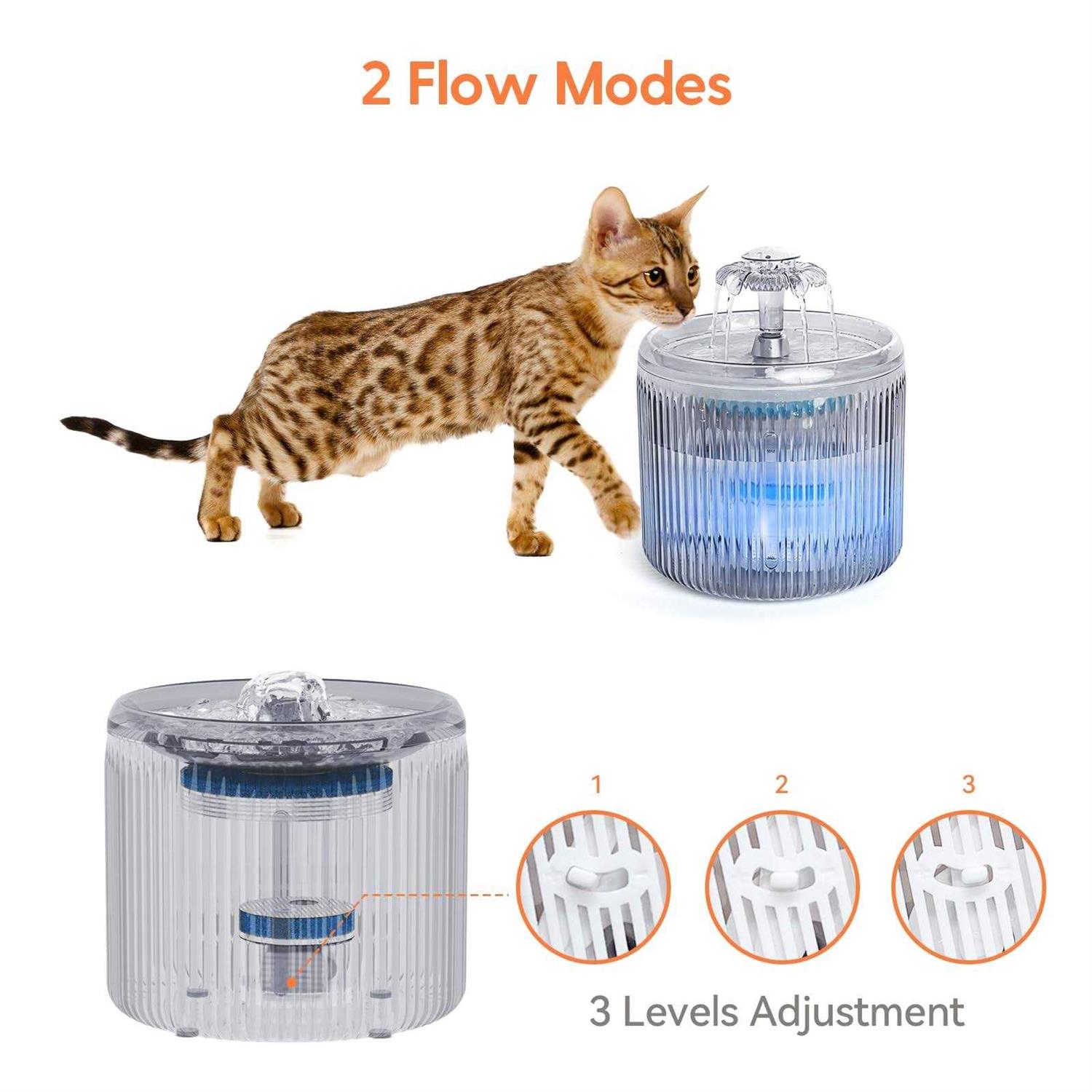 Cat Water Fountain with LED Light 88oz/2.6L No Pawblems Ultra Quiet Pet Water Fountain with 2 Flow Modes - Pet Supplies online store