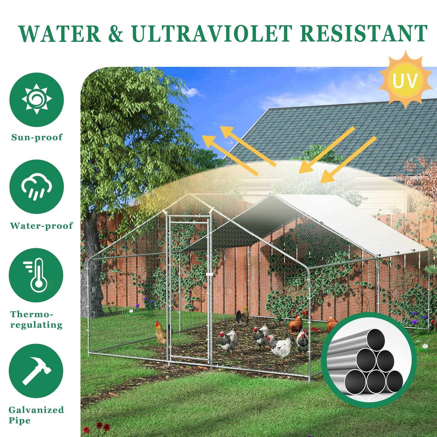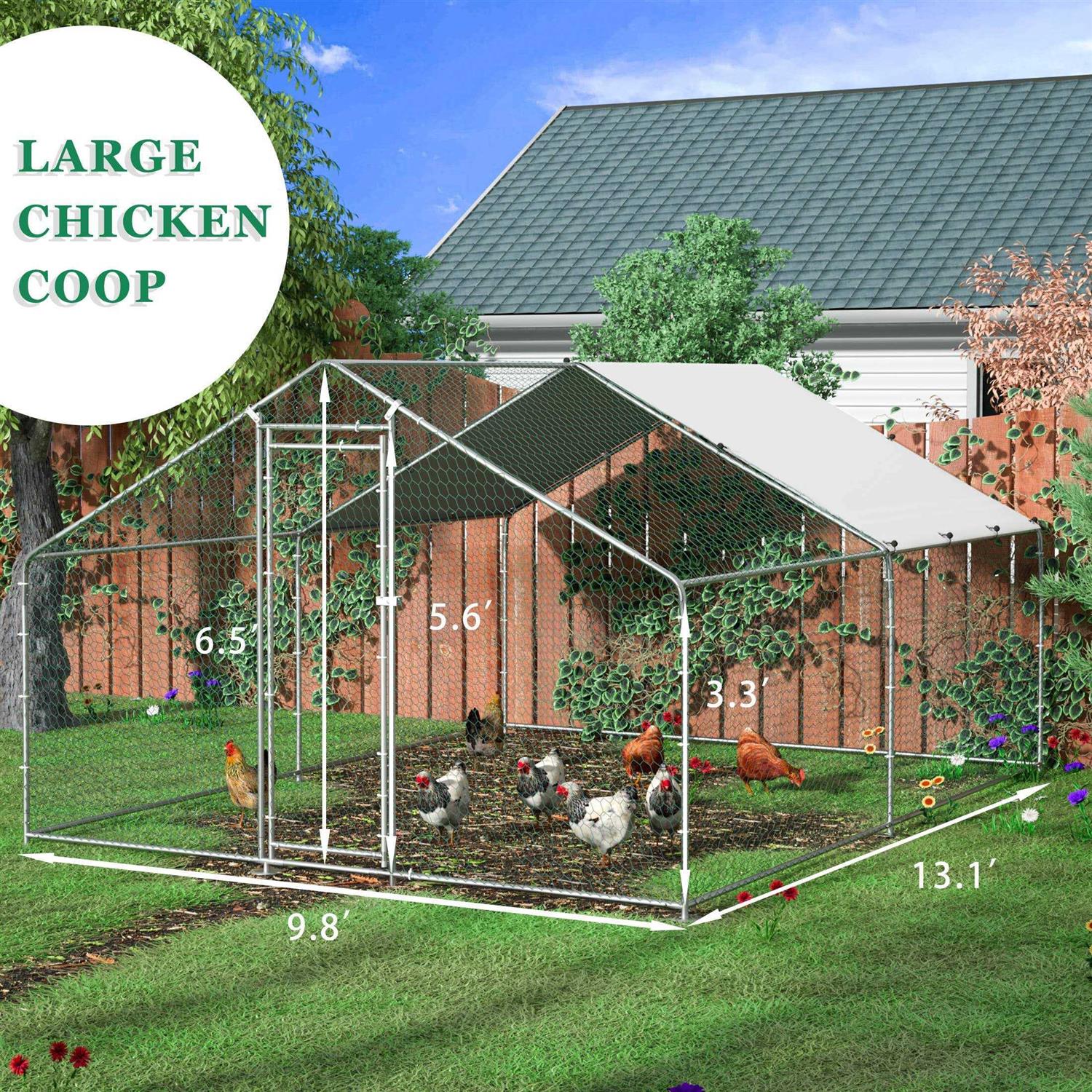 Toetol Extra Large Metal Chicken Coop Walkin Hen Run House Cage, Size: 6.5' Large x 9.8' W x 6.5' H, Silver - Pet Supplies online store