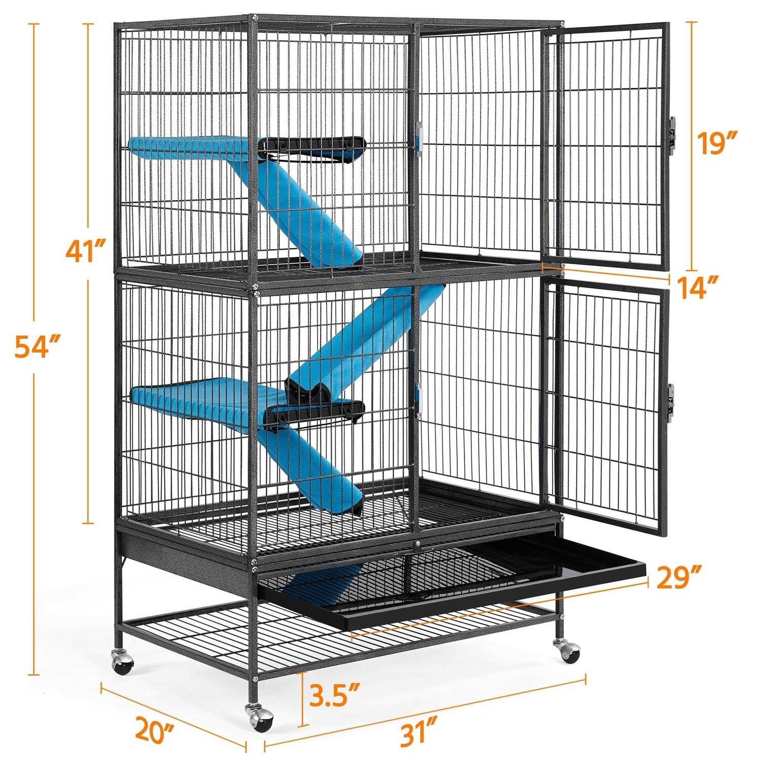 Topeakmart Hammered Black Rolling Metal Small Animal Cage with Removable Ramp - Pet Supplies online store
