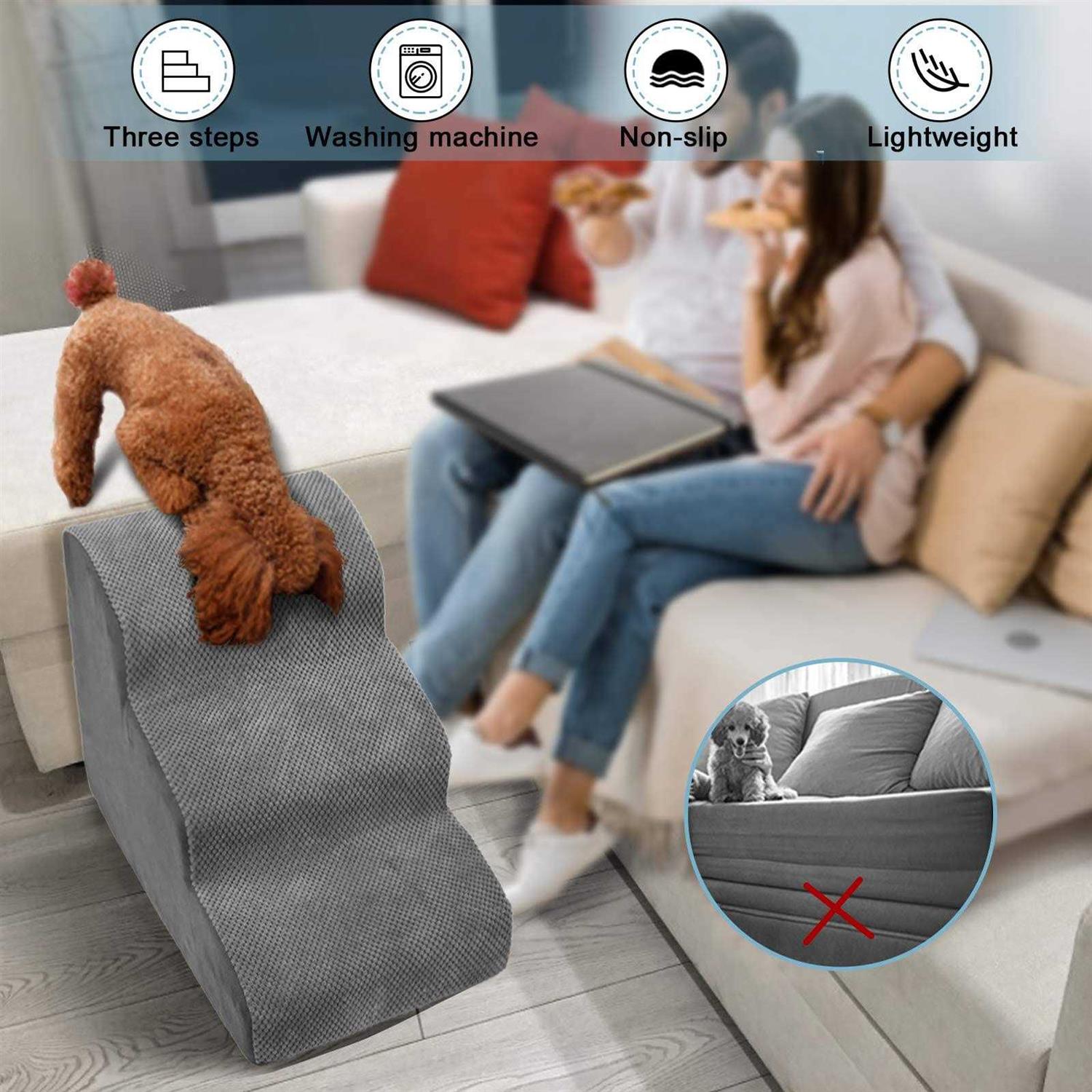 Topmart 3 Tiers Foam Dog Ramps/Steps,Non-Slip Dog Steps,Extra Wide Deep Dog Stairs,High Density Foam Pet Stairs/Ladder,Best for Older Dogs,Cats - Pet Supplies online store