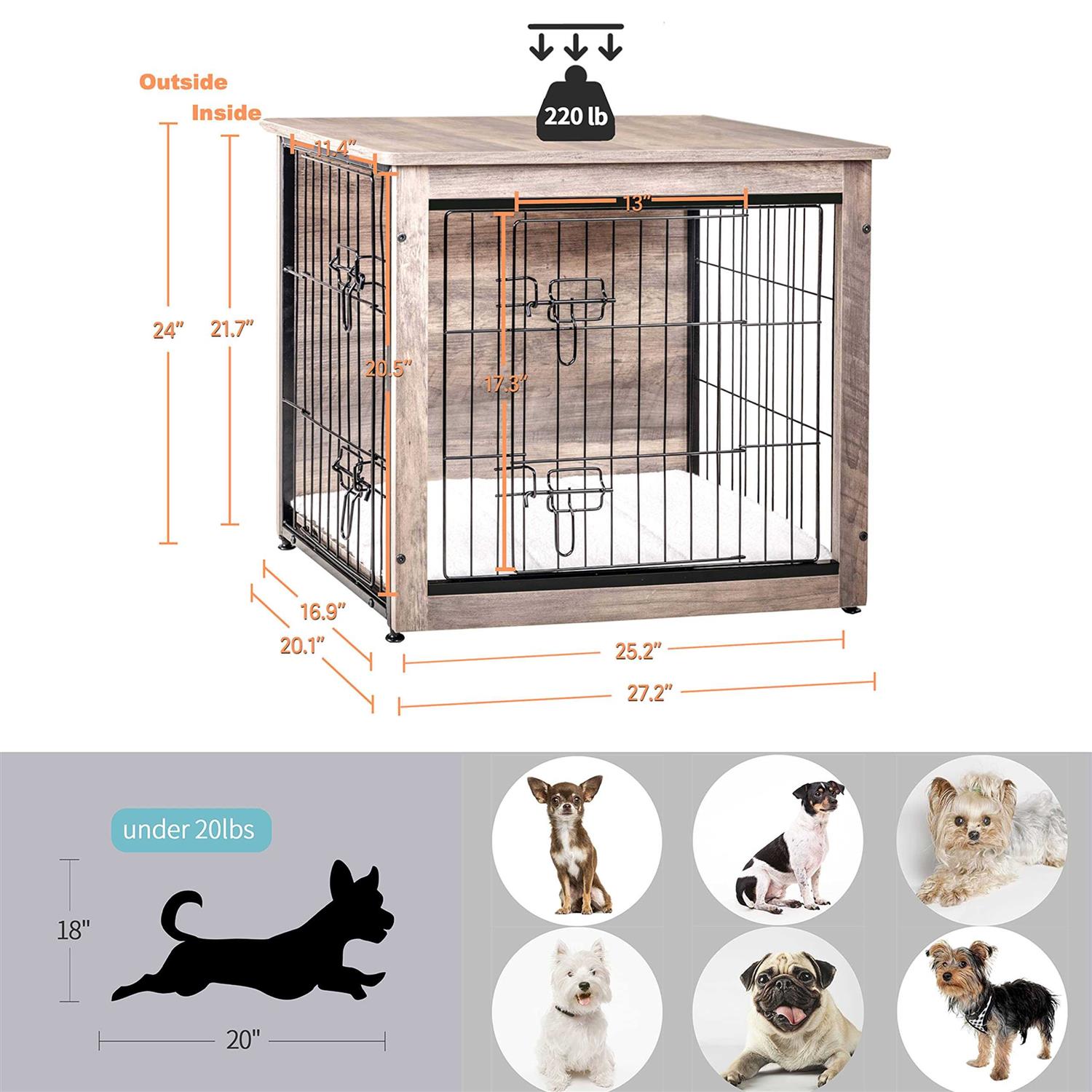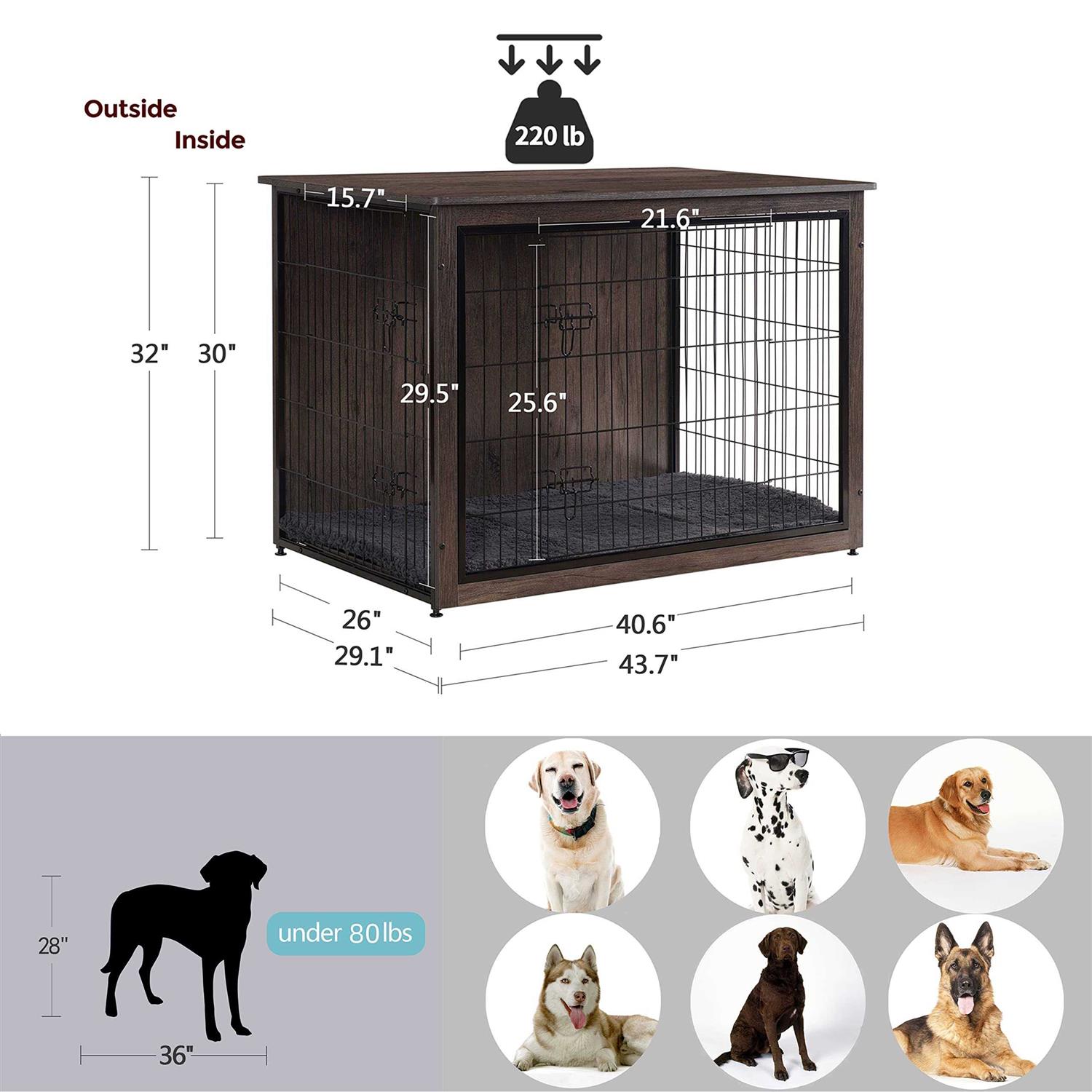 DWANTON Dog Crate Furniture with Cushion Wooden Dog Crate with Double Doors - Pet Supplies online store